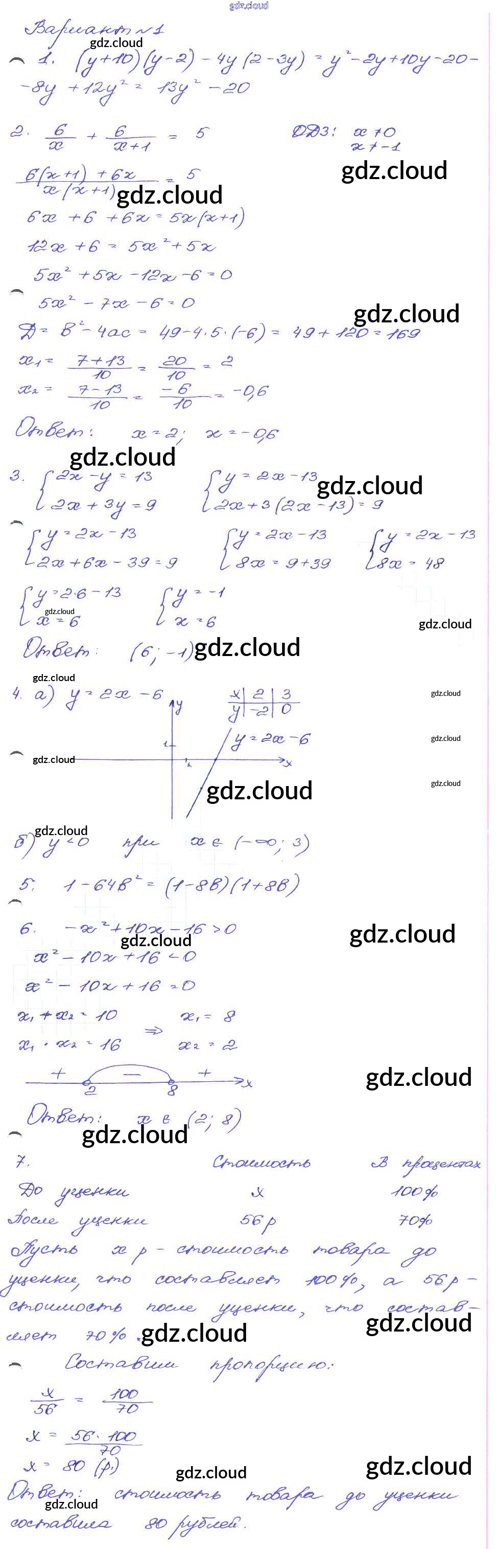 Ответ на задание Вариант-1 Сборник заданий Алгебра за 9 (девятый) класс Кузнецова, Бунимович, Пигарев, Суворова 2008