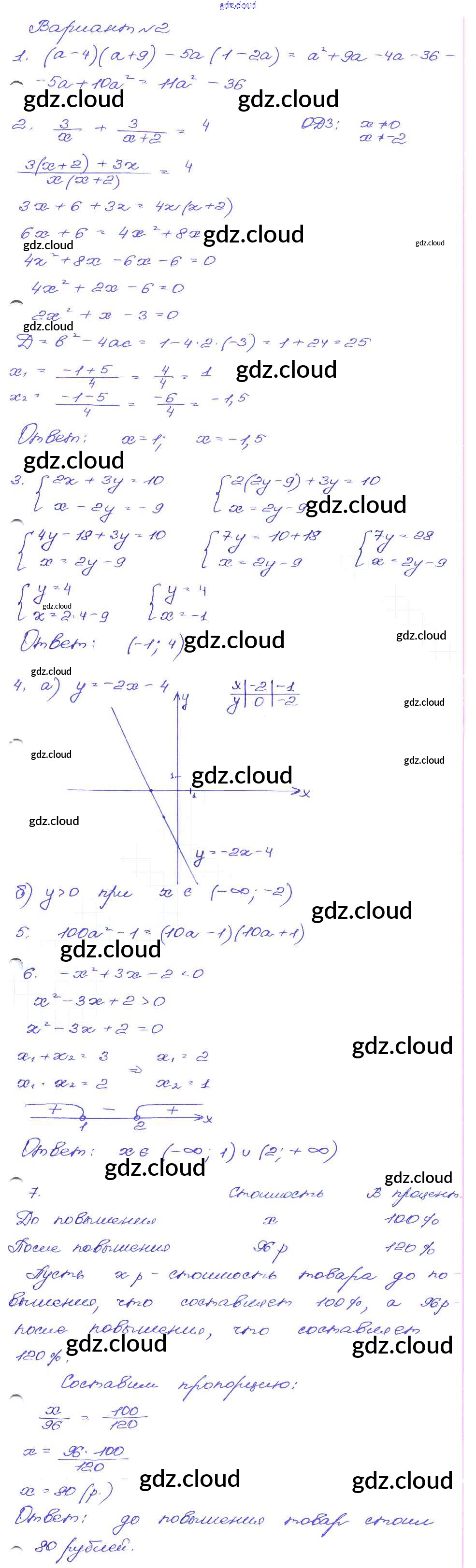 Ответ на задание Вариант-2 Сборник заданий Алгебра за 9 (девятый) класс Кузнецова, Бунимович, Пигарев, Суворова 2008