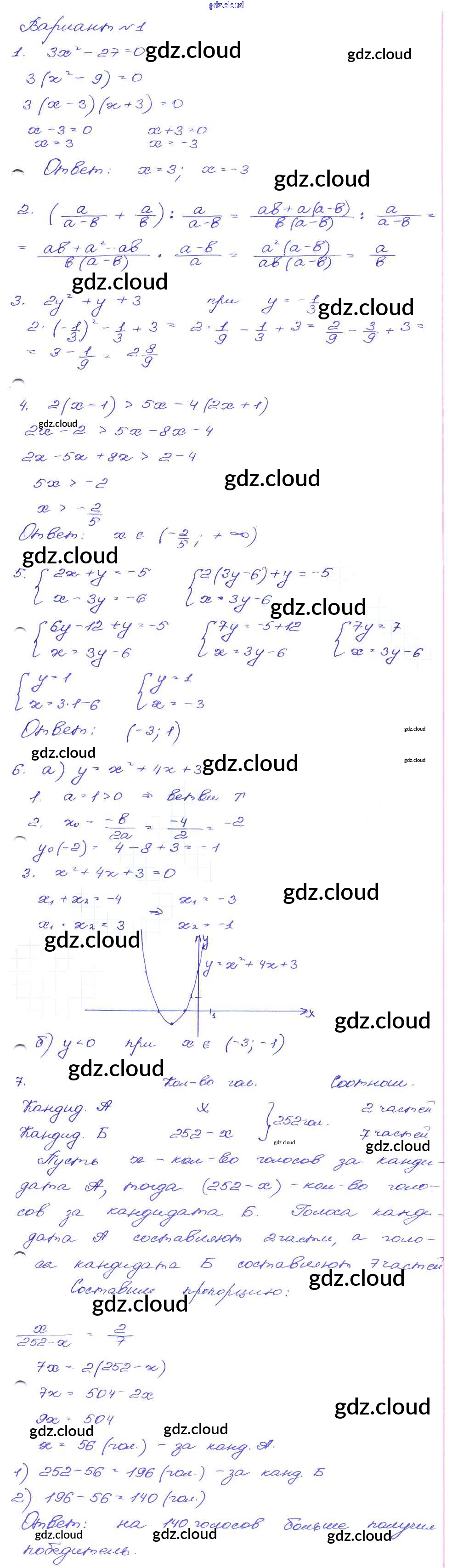 Ответ на задание Вариант-1 Сборник заданий Алгебра за 9 (девятый) класс Кузнецова, Бунимович, Пигарев, Суворова 2008