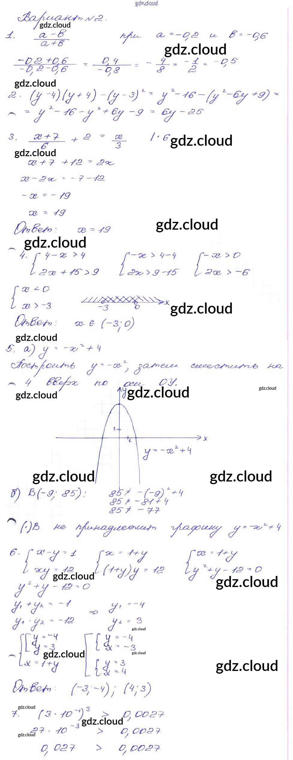 Ответ на задание Вариант-2 Сборник заданий Алгебра за 9 (девятый) класс Кузнецова, Бунимович, Пигарев, Суворова 2008