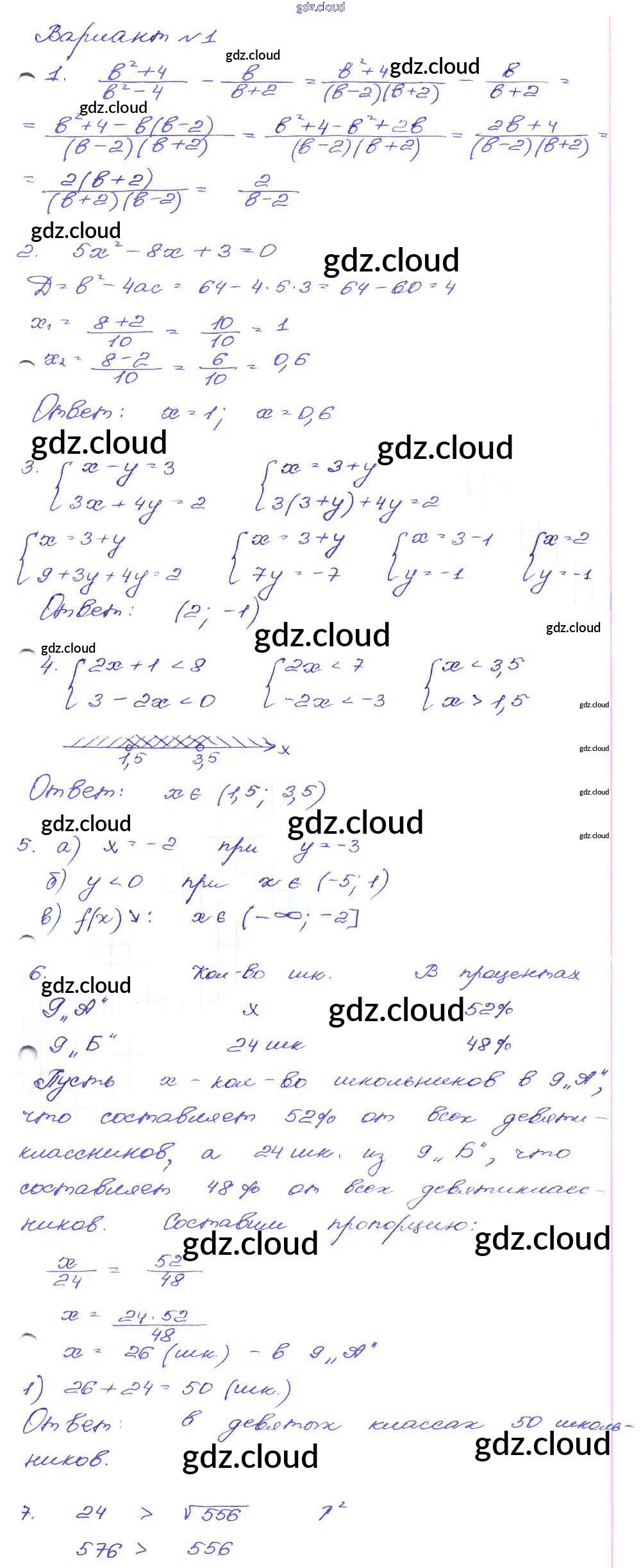 Ответ на задание Вариант-1 Сборник заданий Алгебра за 9 (девятый) класс Кузнецова, Бунимович, Пигарев, Суворова 2008