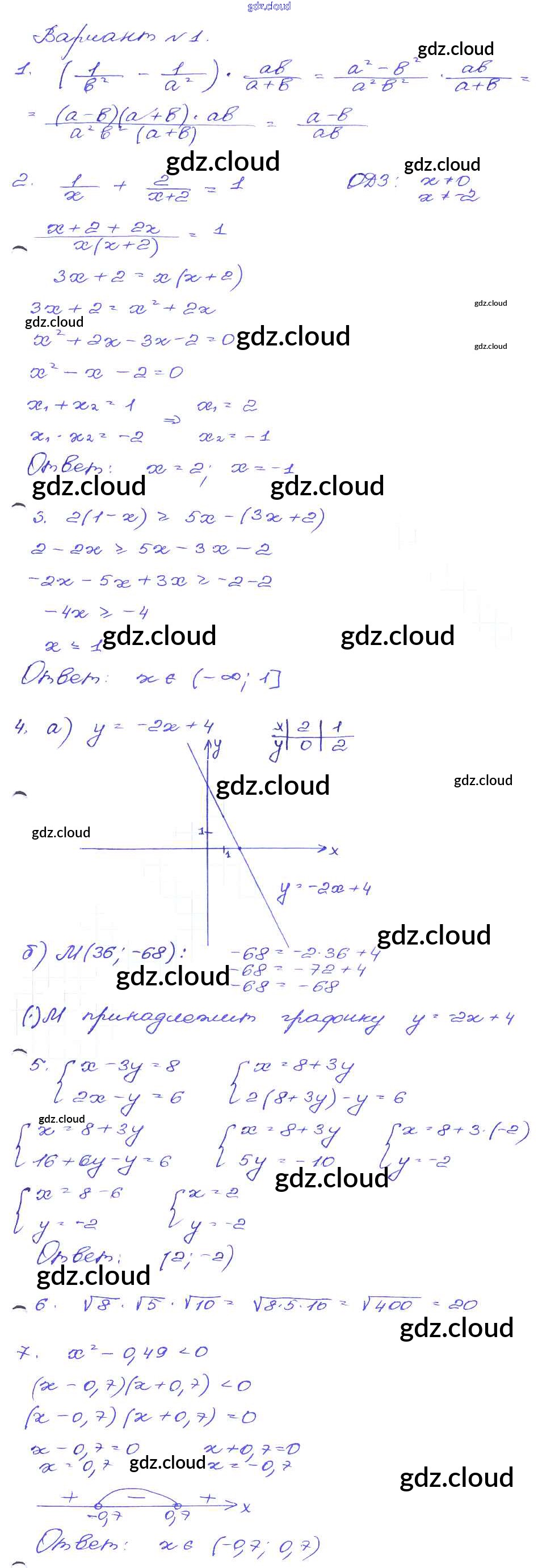 Ответ на задание Вариант-1 Сборник заданий Алгебра за 9 (девятый) класс Кузнецова, Бунимович, Пигарев, Суворова 2008