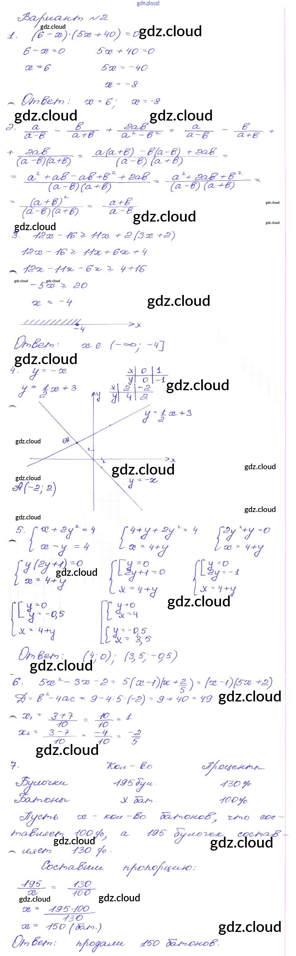Ответ на задание Вариант-2 Сборник заданий Алгебра за 9 (девятый) класс Кузнецова, Бунимович, Пигарев, Суворова 2008