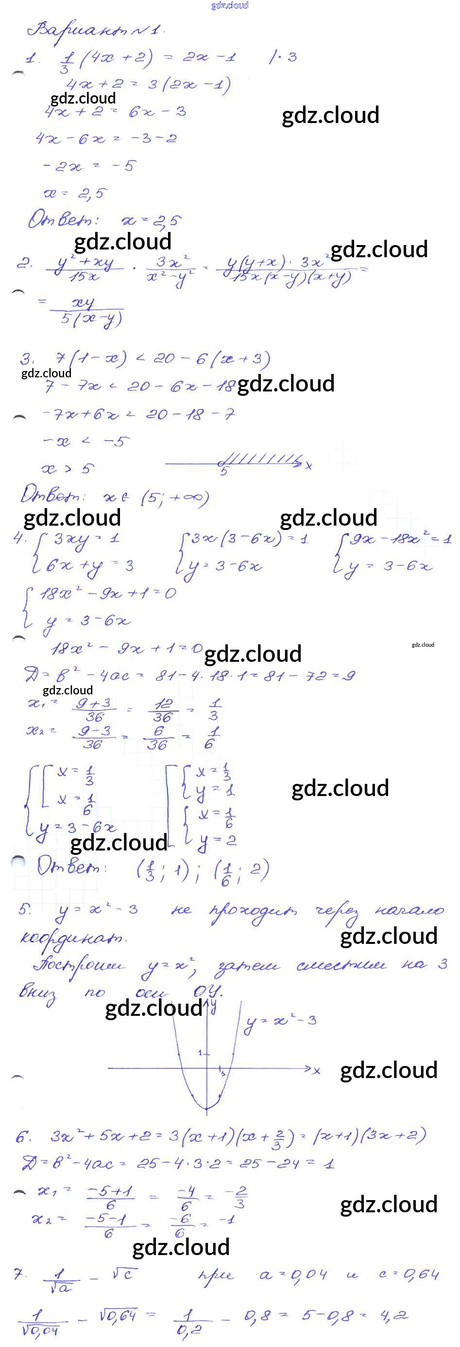 Ответ на задание Вариант-1 Сборник заданий Алгебра за 9 (девятый) класс Кузнецова, Бунимович, Пигарев, Суворова 2008