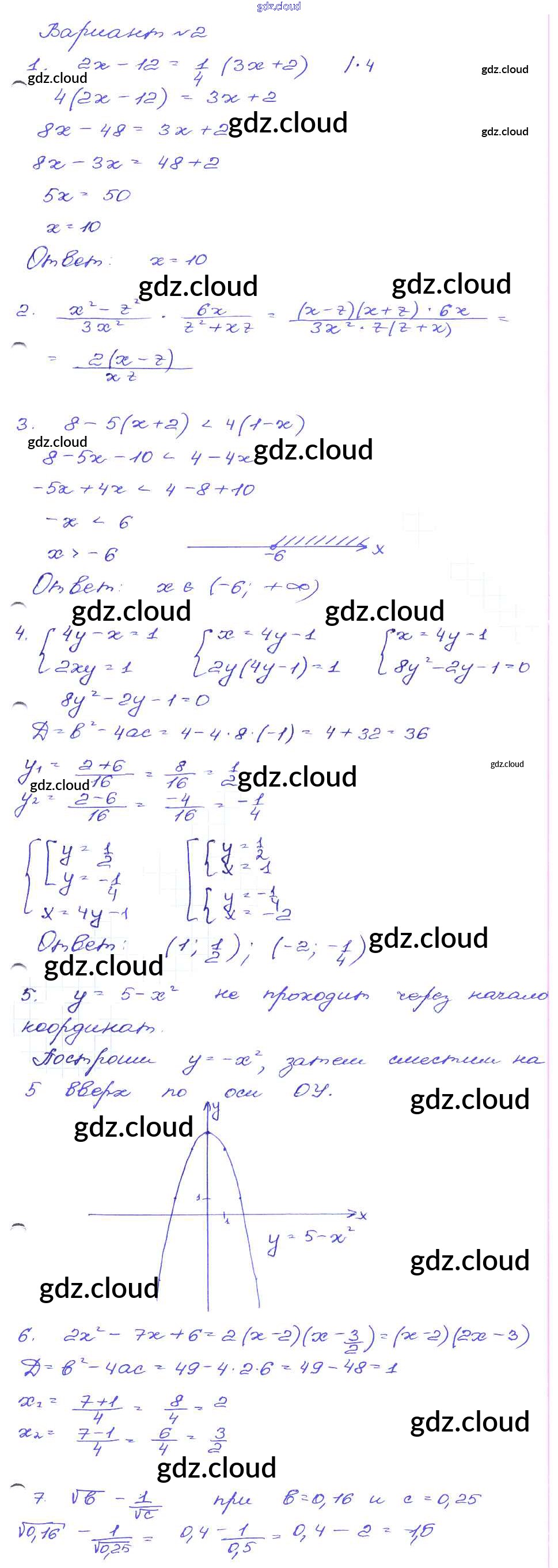 Ответ на задание Вариант-2 Сборник заданий Алгебра за 9 (девятый) класс Кузнецова, Бунимович, Пигарев, Суворова 2008