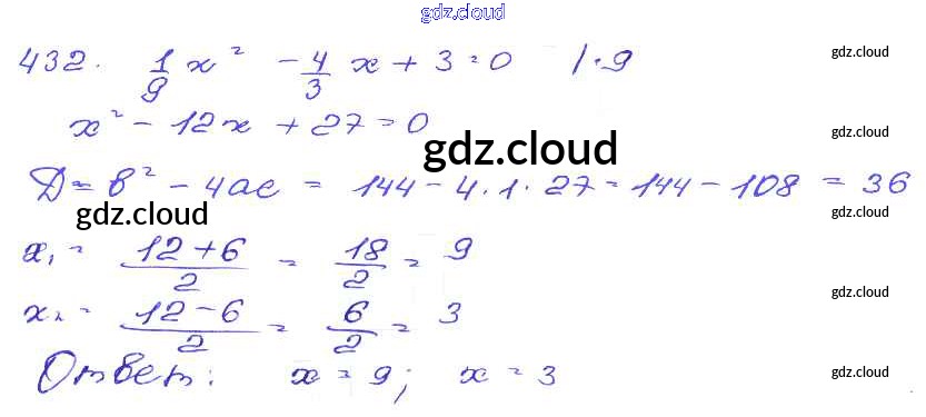 Ответ на задание 432 Сборник заданий Алгебра за 9 (девятый) класс Кузнецова, Бунимович, Пигарев, Суворова 2008 ФГОС онлайн и без номера телефона.