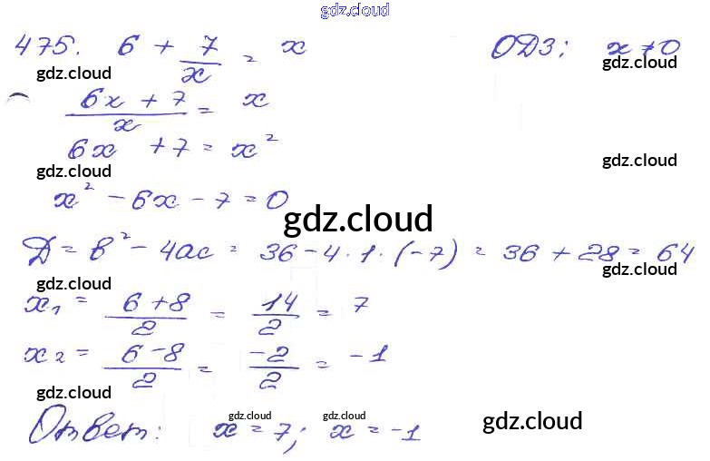 Ответ на задание 475 Сборник заданий Алгебра за 9 (девятый) класс Кузнецова, Бунимович, Пигарев, Суворова 2008 ФГОС онлайн и без номера телефона.