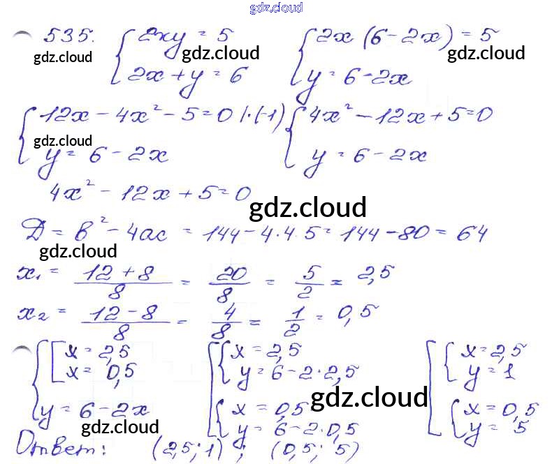 Ответ на задание 535 Сборник заданий Алгебра за 9 (девятый) класс Кузнецова, Бунимович, Пигарев, Суворова 2008 ФГОС онлайн и без номера телефона.
