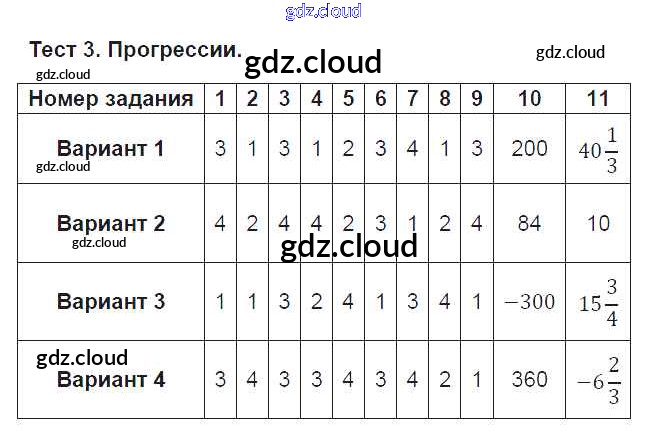 Ответ на задание Тест № 3. Прогрессии Тематические тесты Алгебра за 9 (девятый) класс Ткачева 2014 ФГОС онлайн и без номера телефона.