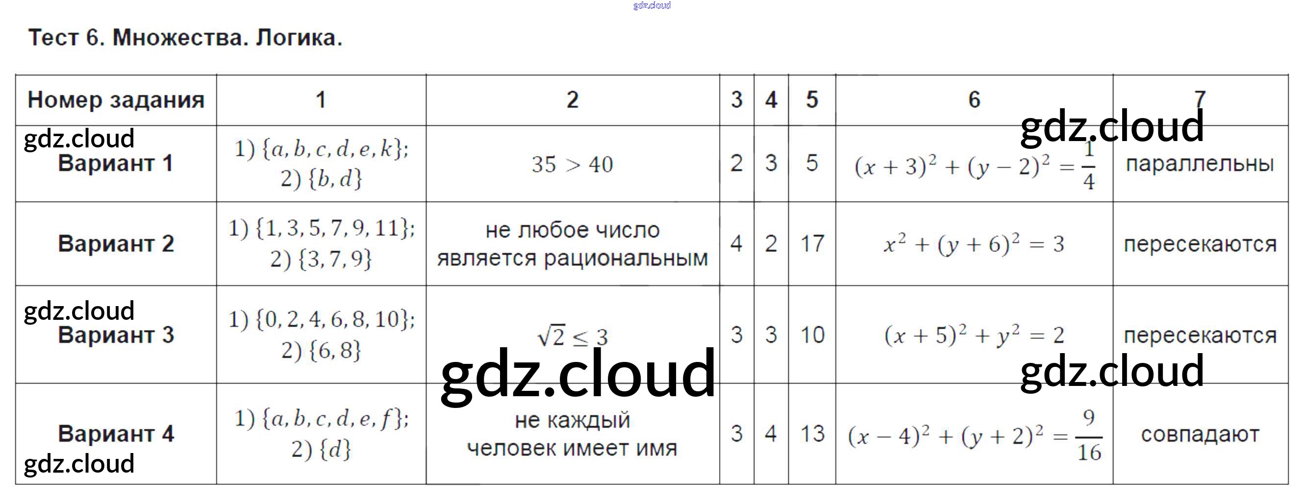 Ответ на задание Тест № 6. Множества. Логика Тематические тесты Алгебра за 9 (девятый) класс Ткачева 2014 ФГОС онлайн и без номера телефона.