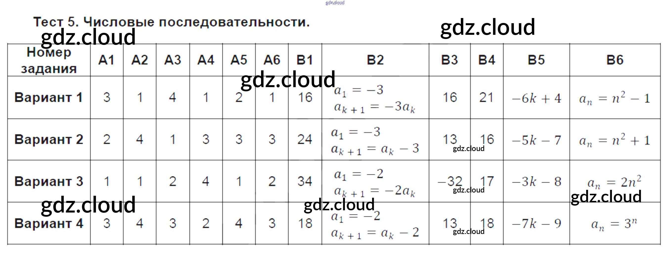 Ответ на задание Тест №5. Числовые последовательности Тематические тесты Алгебра за 9 (девятый) класс Чулков, Струков 2017 ФГОС онлайн и без номера телефона.