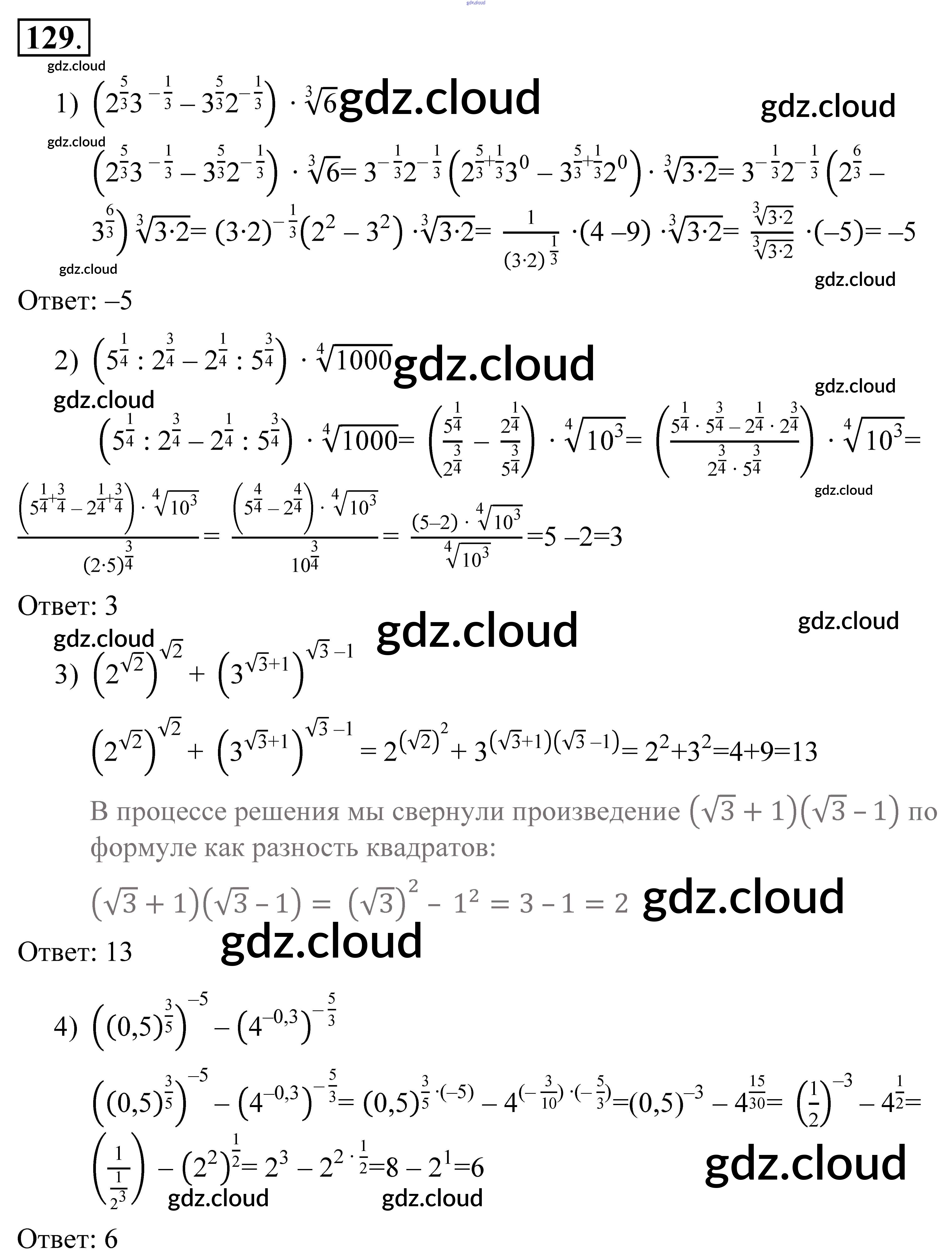 Ответ на задание 129 Учебник Алгебра за 9 (девятый) класс Алимов, Колягин, Сидоров 2014 ФГОС онлайн и без номера телефона.