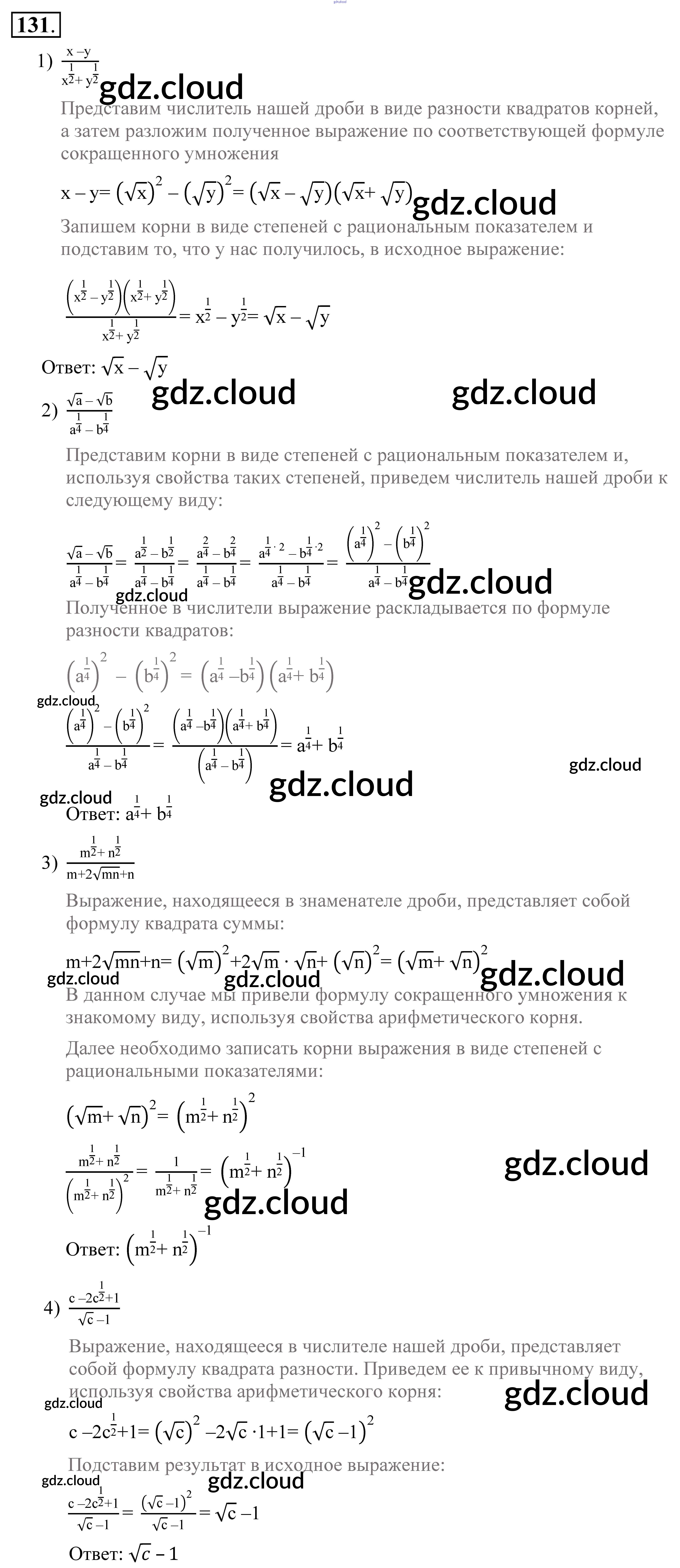 Ответ на задание 131 Учебник Алгебра за 9 (девятый) класс Алимов, Колягин, Сидоров 2014 ФГОС онлайн и без номера телефона.