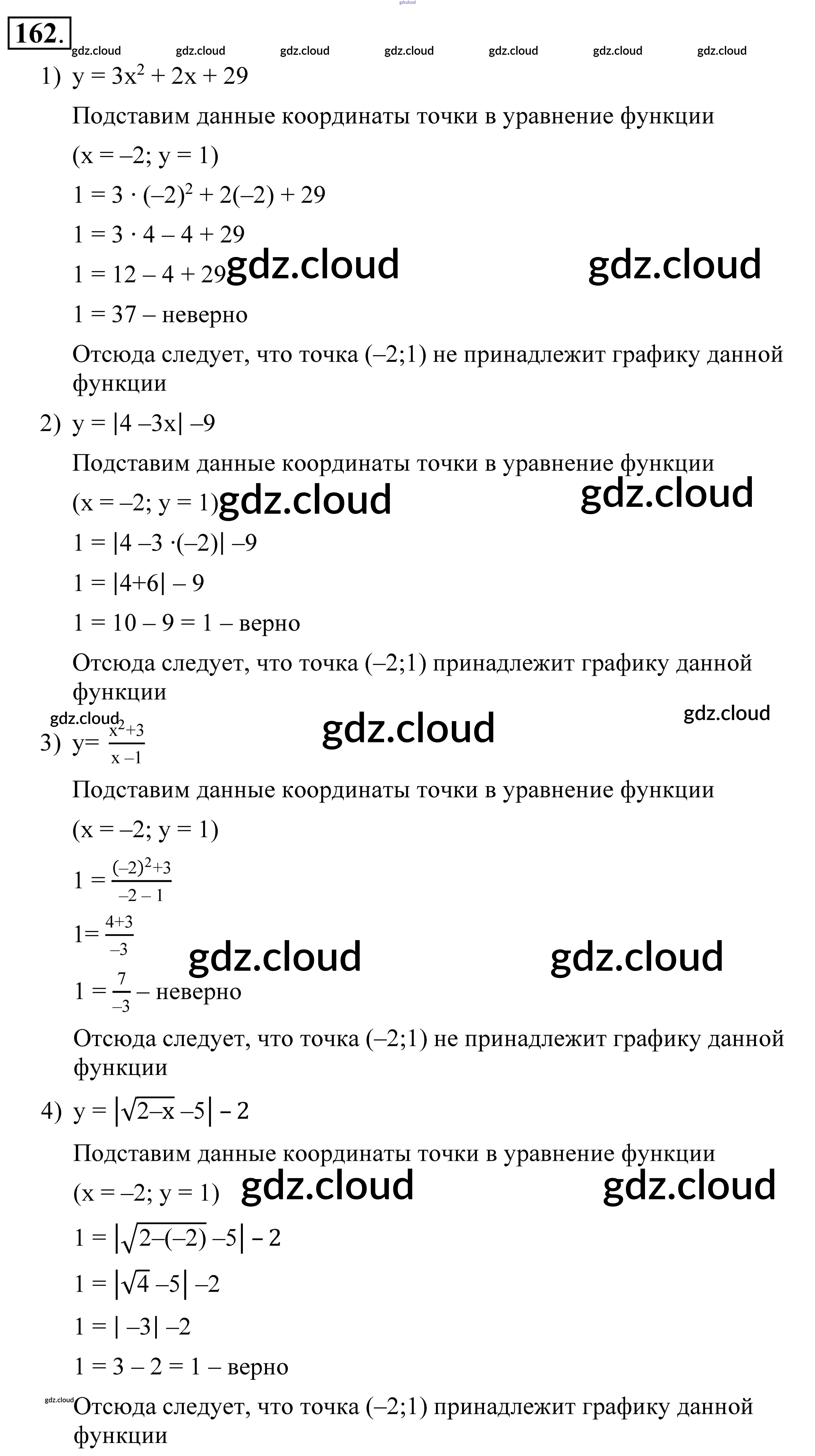 Ответ на задание 162 Учебник Алгебра за 9 (девятый) класс Алимов, Колягин, Сидоров 2014 ФГОС онлайн и без номера телефона.