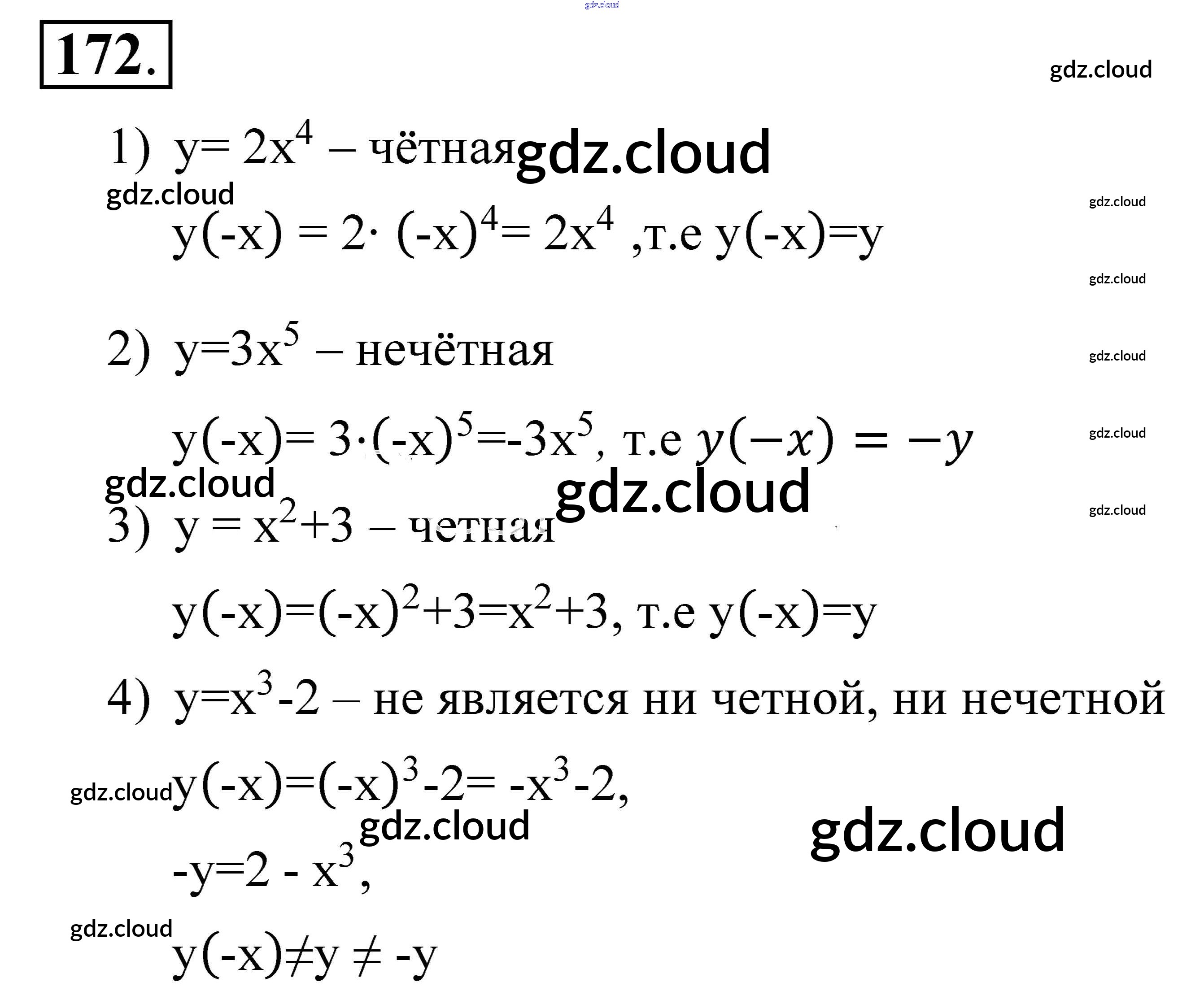 Ответ на задание 172 Учебник Алгебра за 9 (девятый) класс Алимов, Колягин, Сидоров 2014 ФГОС онлайн и без номера телефона.