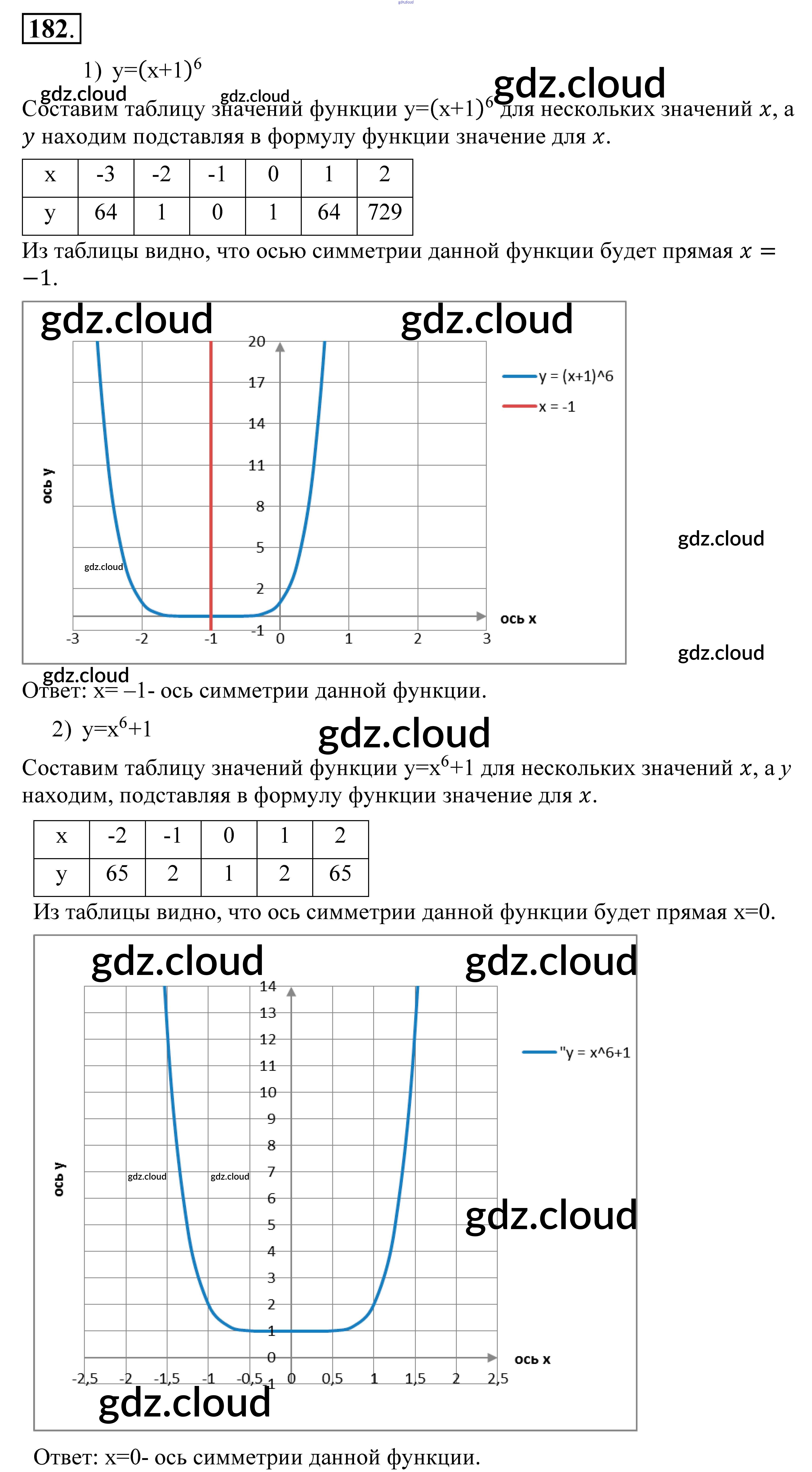 Ответ на задание 182 Учебник Алгебра за 9 (девятый) класс Алимов, Колягин, Сидоров 2014 ФГОС онлайн и без номера телефона.