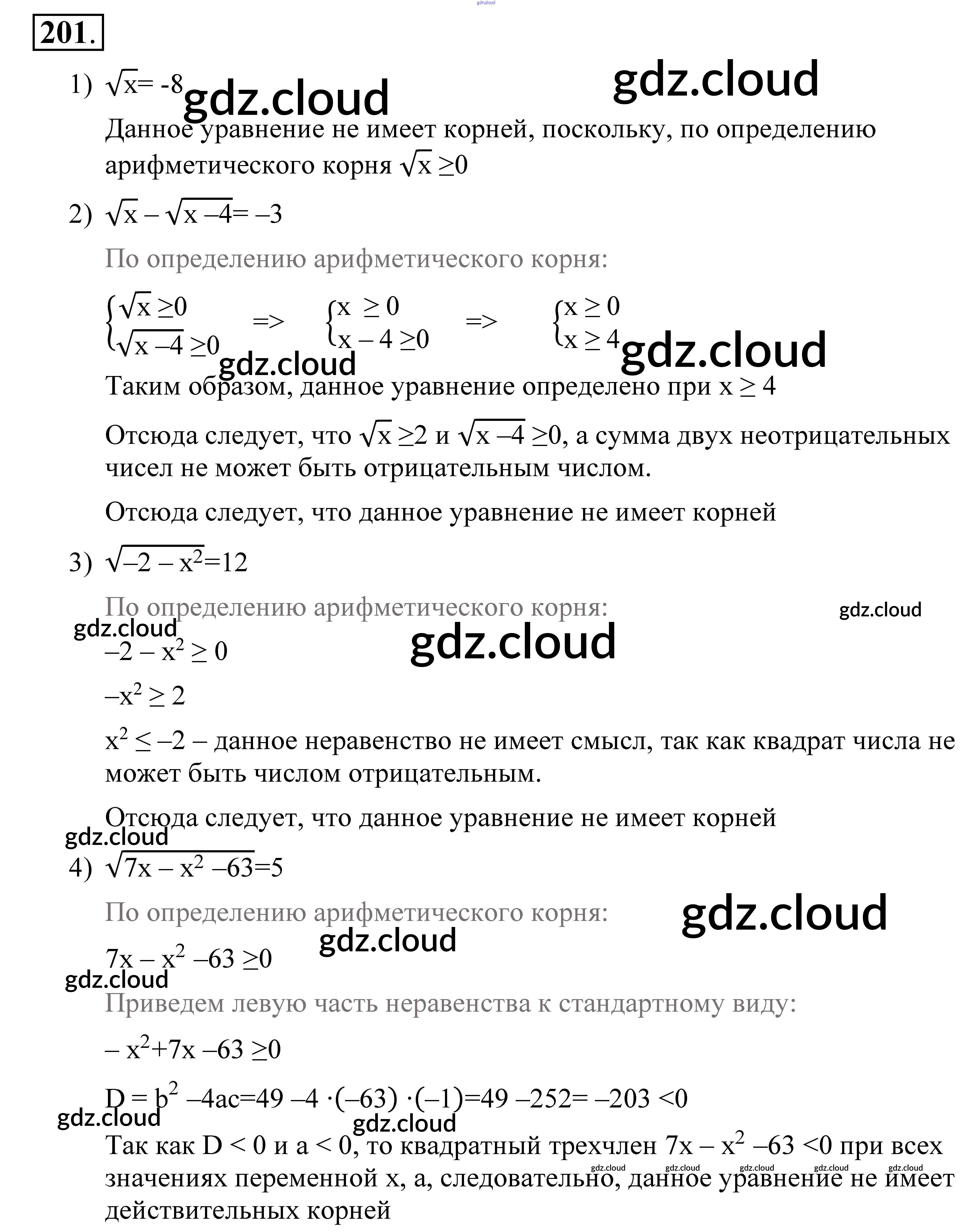Ответ на задание 201 Учебник Алгебра за 9 (девятый) класс Алимов, Колягин, Сидоров 2014 ФГОС онлайн и без номера телефона.