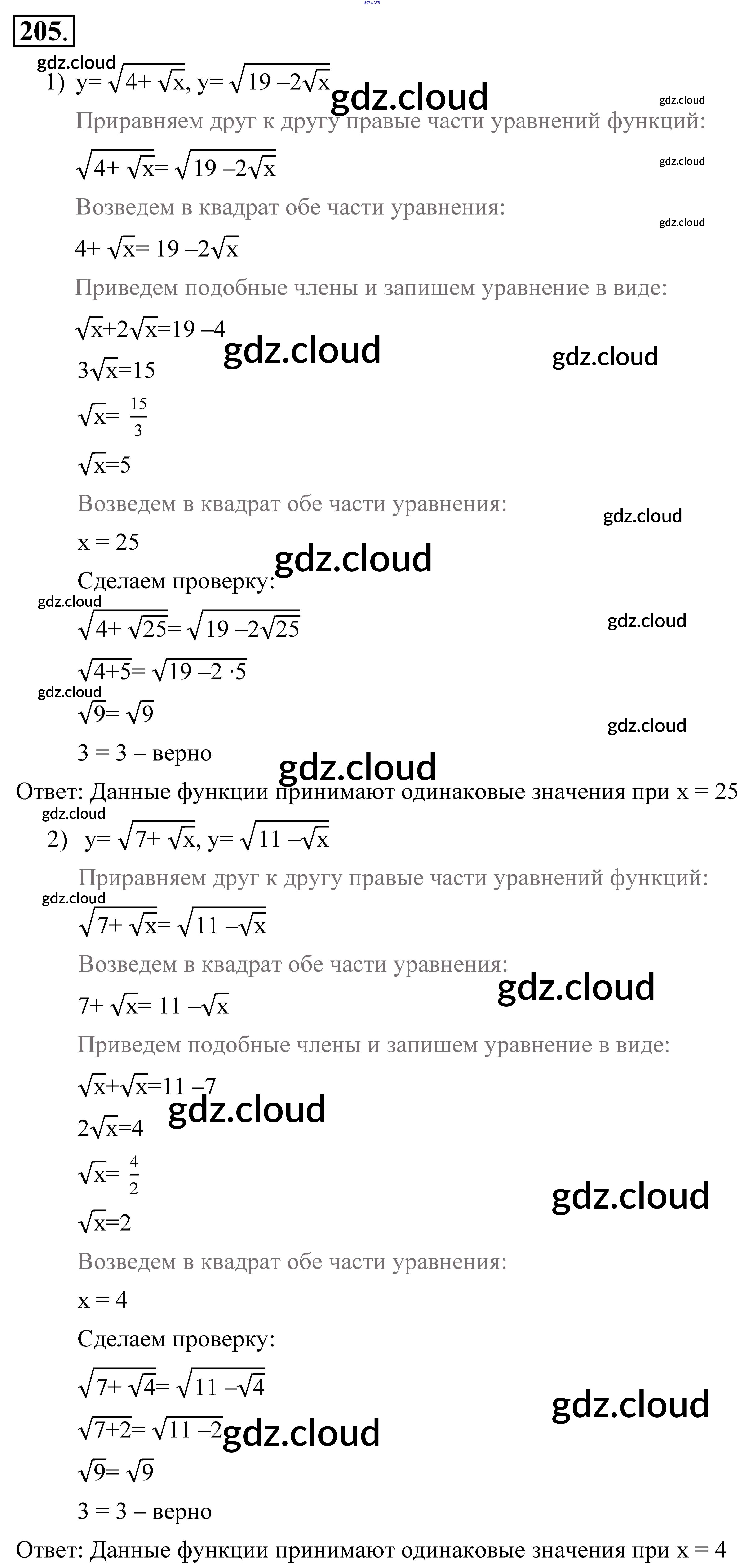 Ответ на задание 205 Учебник Алгебра за 9 (девятый) класс Алимов, Колягин, Сидоров 2014 ФГОС онлайн и без номера телефона.