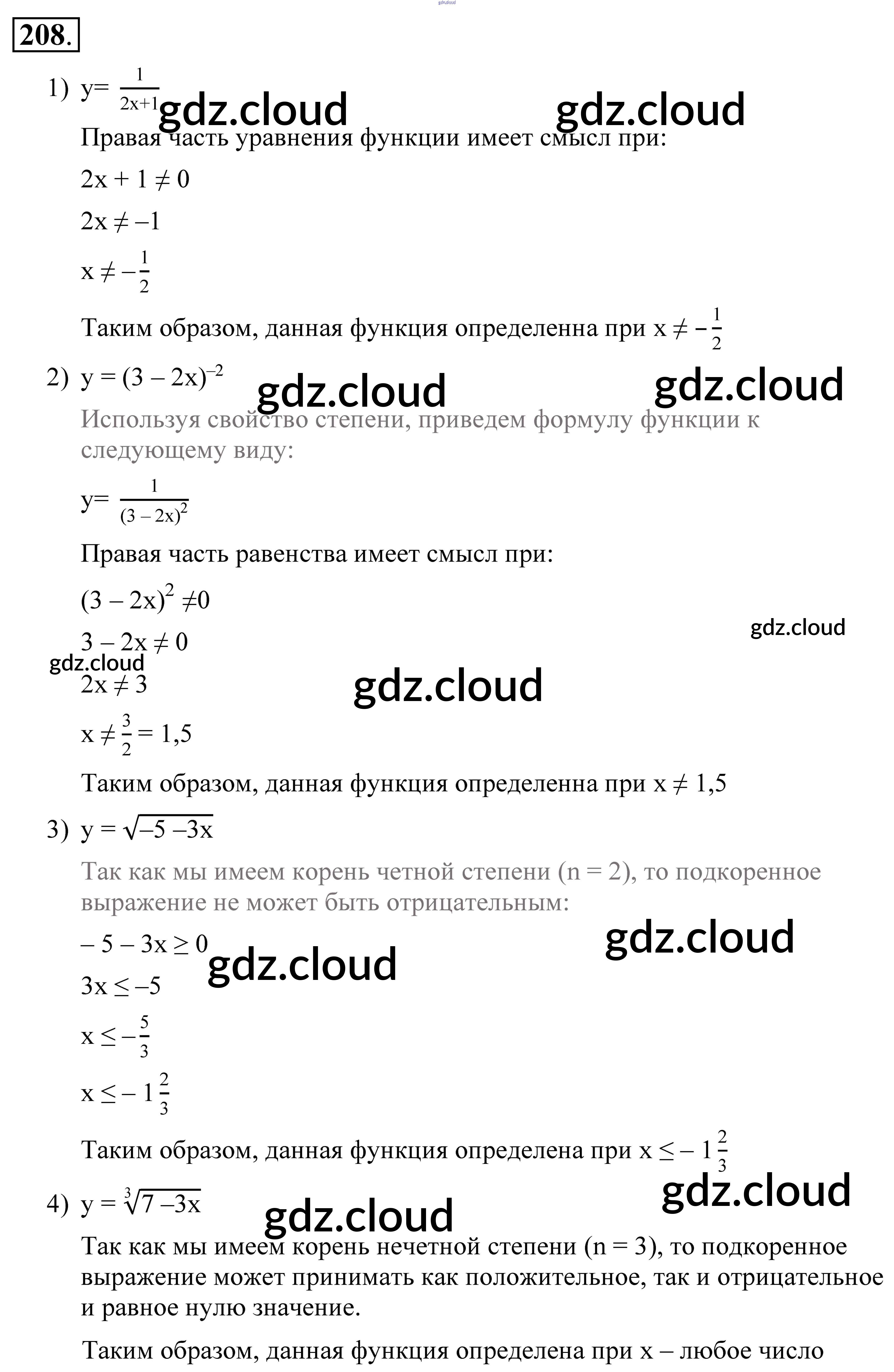 Ответ на задание 208 Учебник Алгебра за 9 (девятый) класс Алимов, Колягин, Сидоров 2014 ФГОС онлайн и без номера телефона.