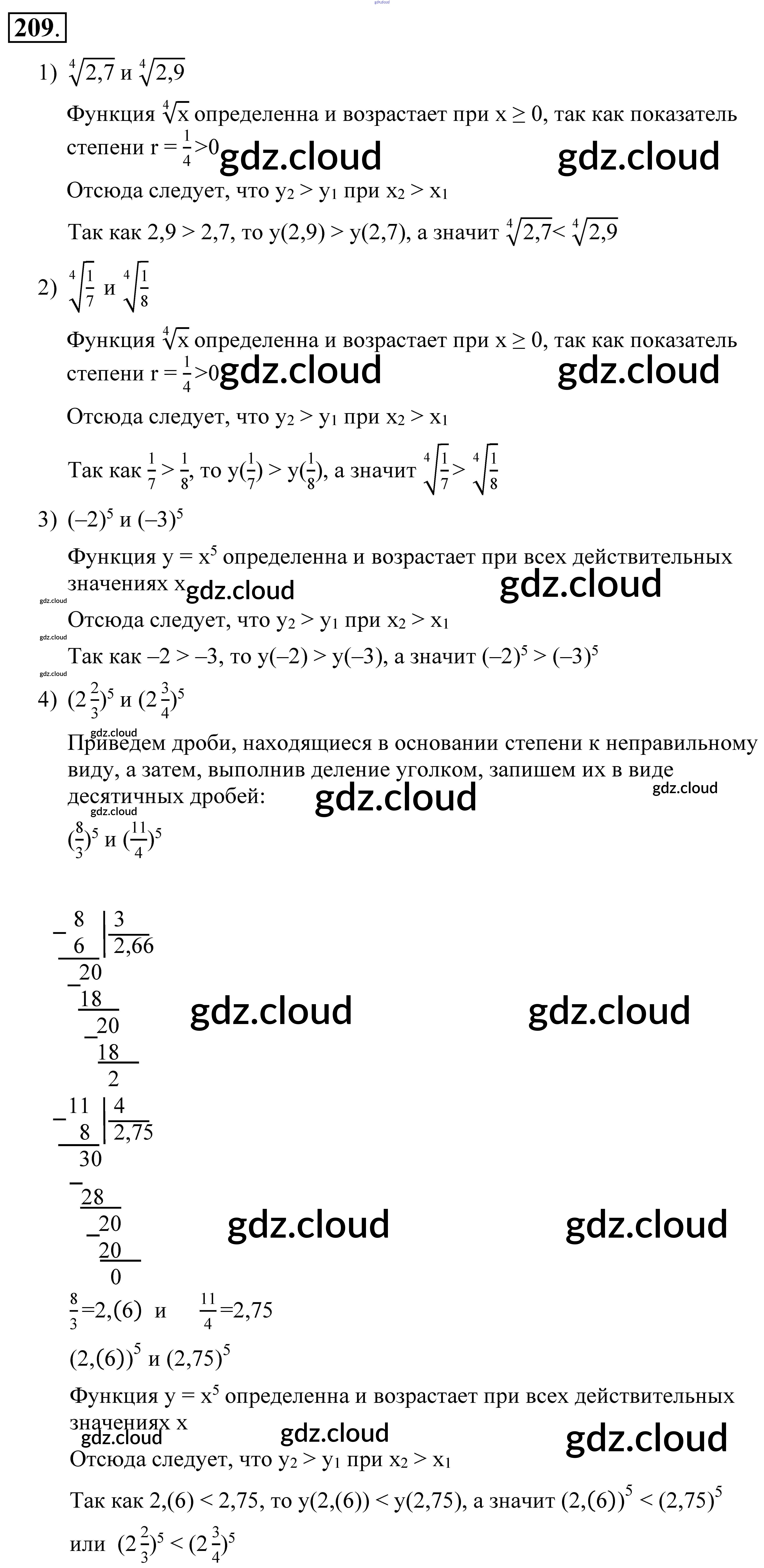 Ответ на задание 209 Учебник Алгебра за 9 (девятый) класс Алимов, Колягин, Сидоров 2014 ФГОС онлайн и без номера телефона.