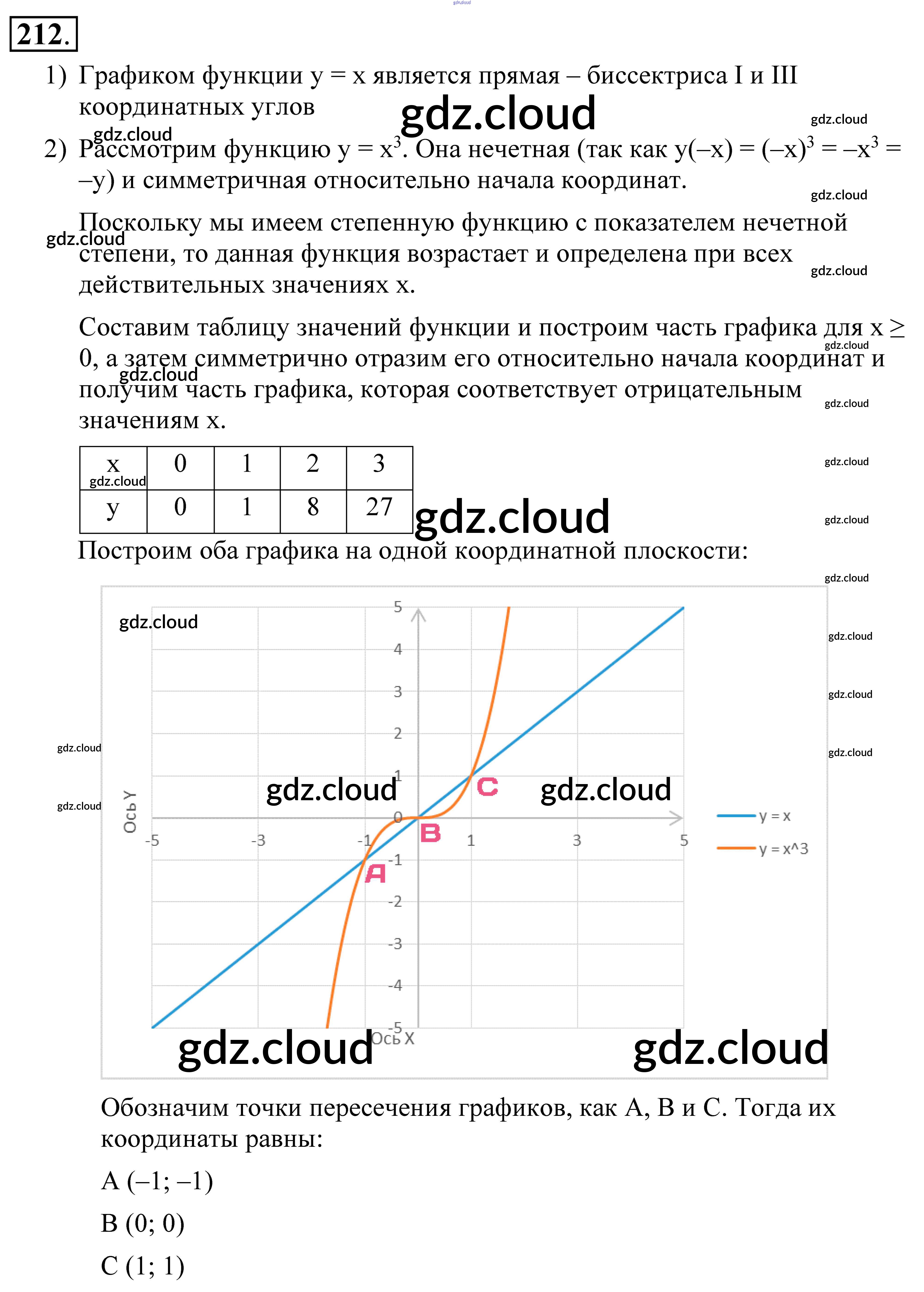 Ответ на задание 212 Учебник Алгебра за 9 (девятый) класс Алимов, Колягин, Сидоров 2014 ФГОС онлайн и без номера телефона.