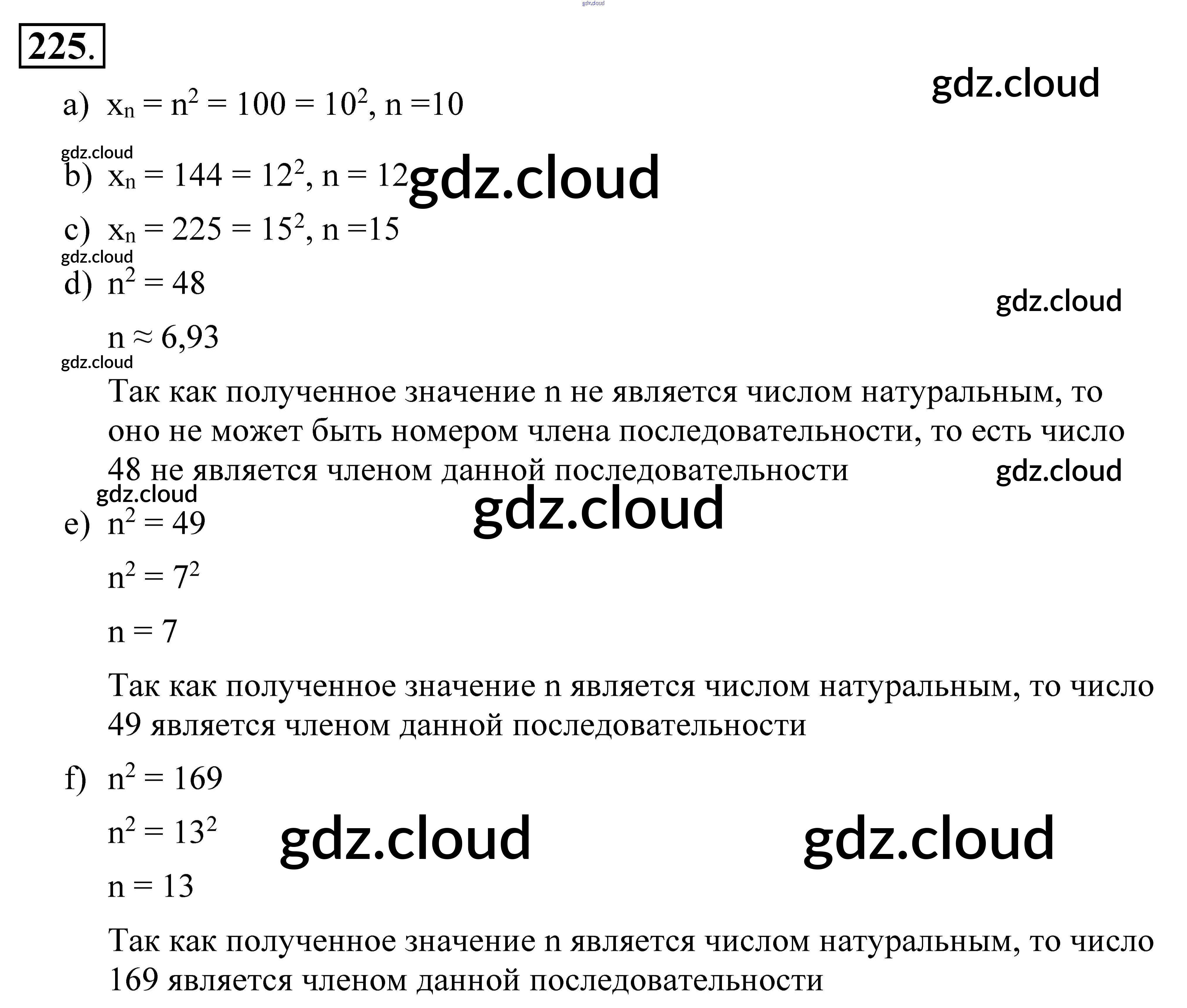 Ответ на задание 225 Учебник Алгебра за 9 (девятый) класс Алимов, Колягин, Сидоров 2014 ФГОС онлайн и без номера телефона.