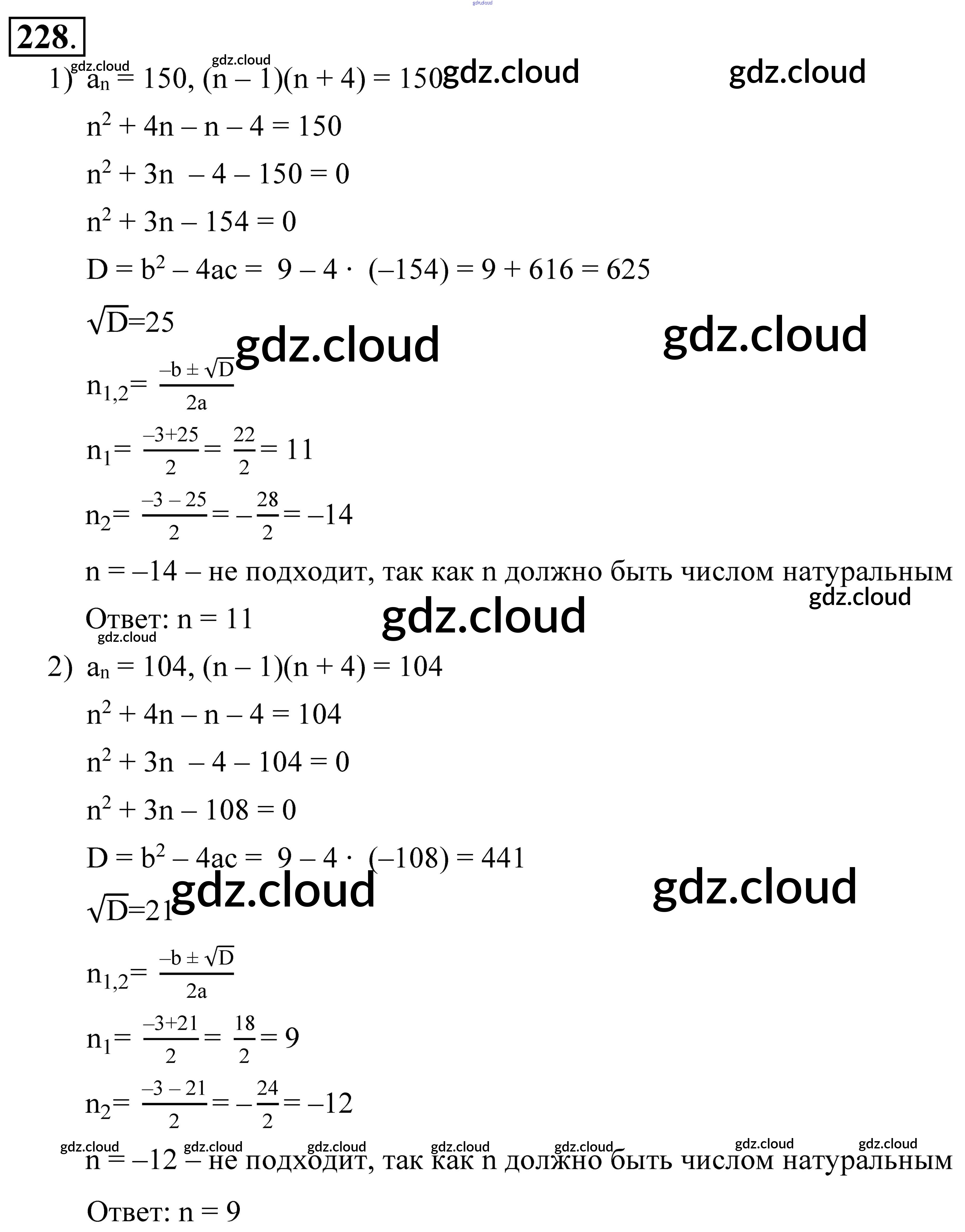 Ответ на задание 228 Учебник Алгебра за 9 (девятый) класс Алимов, Колягин, Сидоров 2014 ФГОС онлайн и без номера телефона.