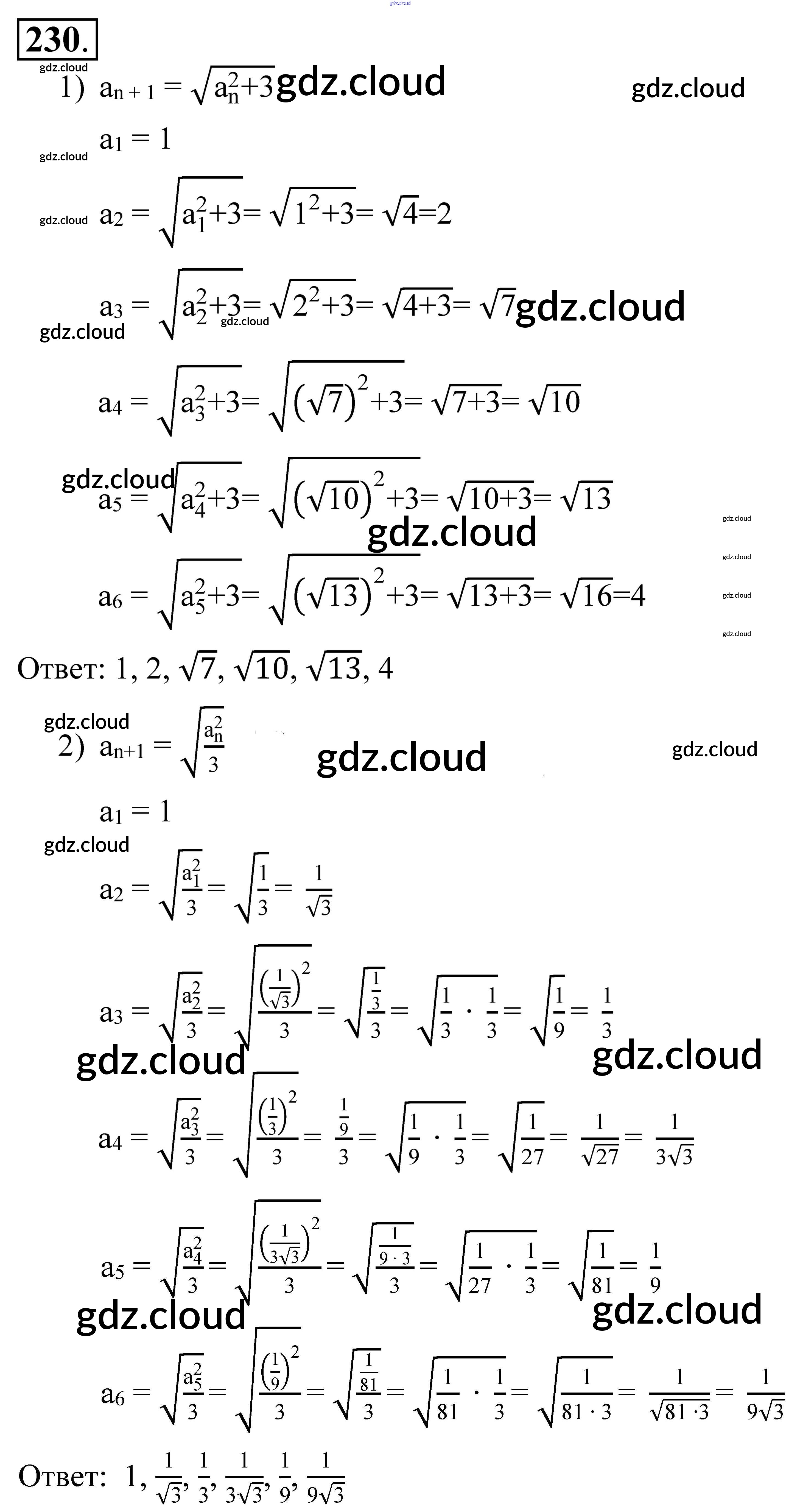 Ответ на задание 230 Учебник Алгебра за 9 (девятый) класс Алимов, Колягин, Сидоров 2014 ФГОС онлайн и без номера телефона.