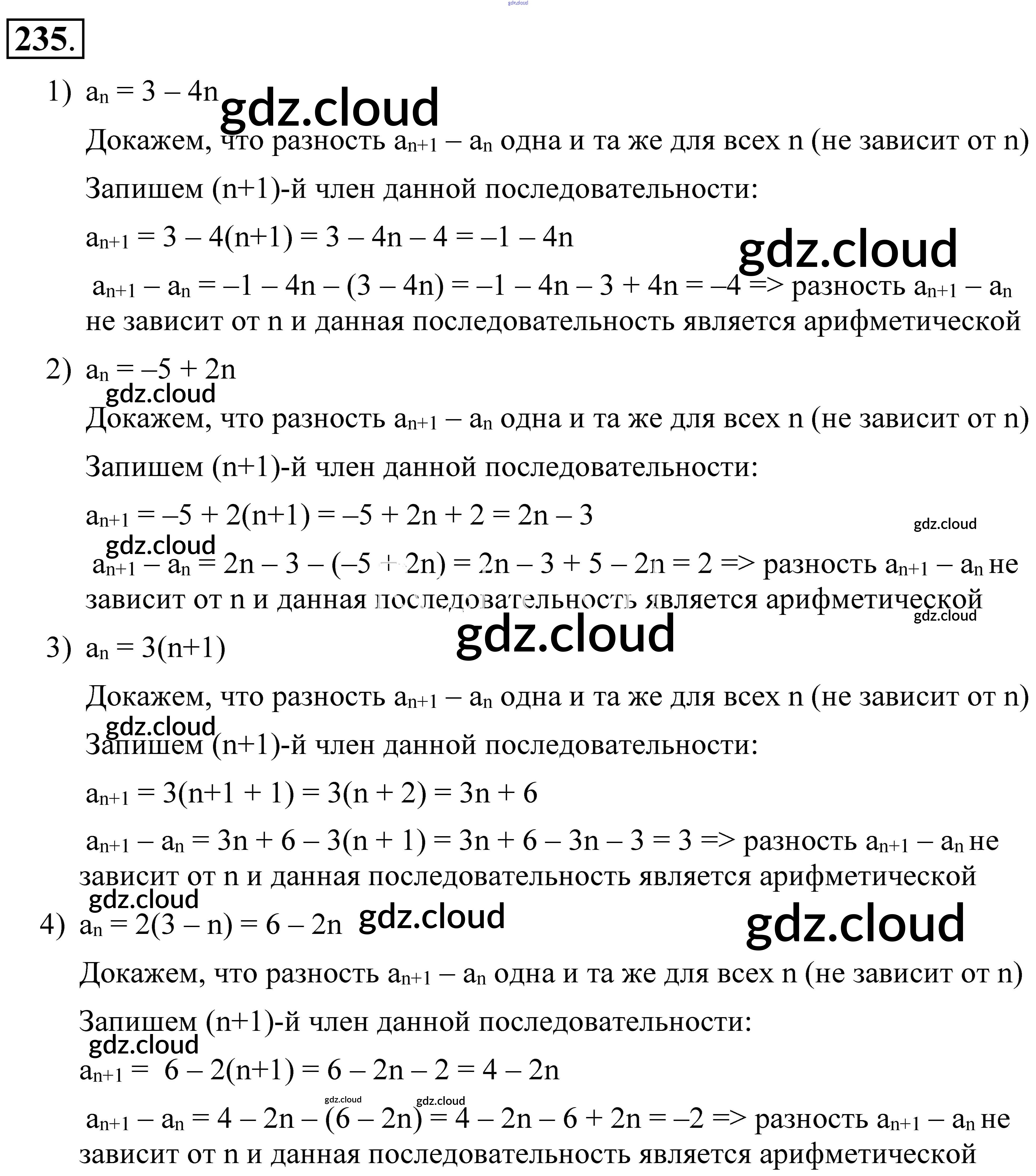 Ответ на задание 235 Учебник Алгебра за 9 (девятый) класс Алимов, Колягин, Сидоров 2014 ФГОС онлайн и без номера телефона.