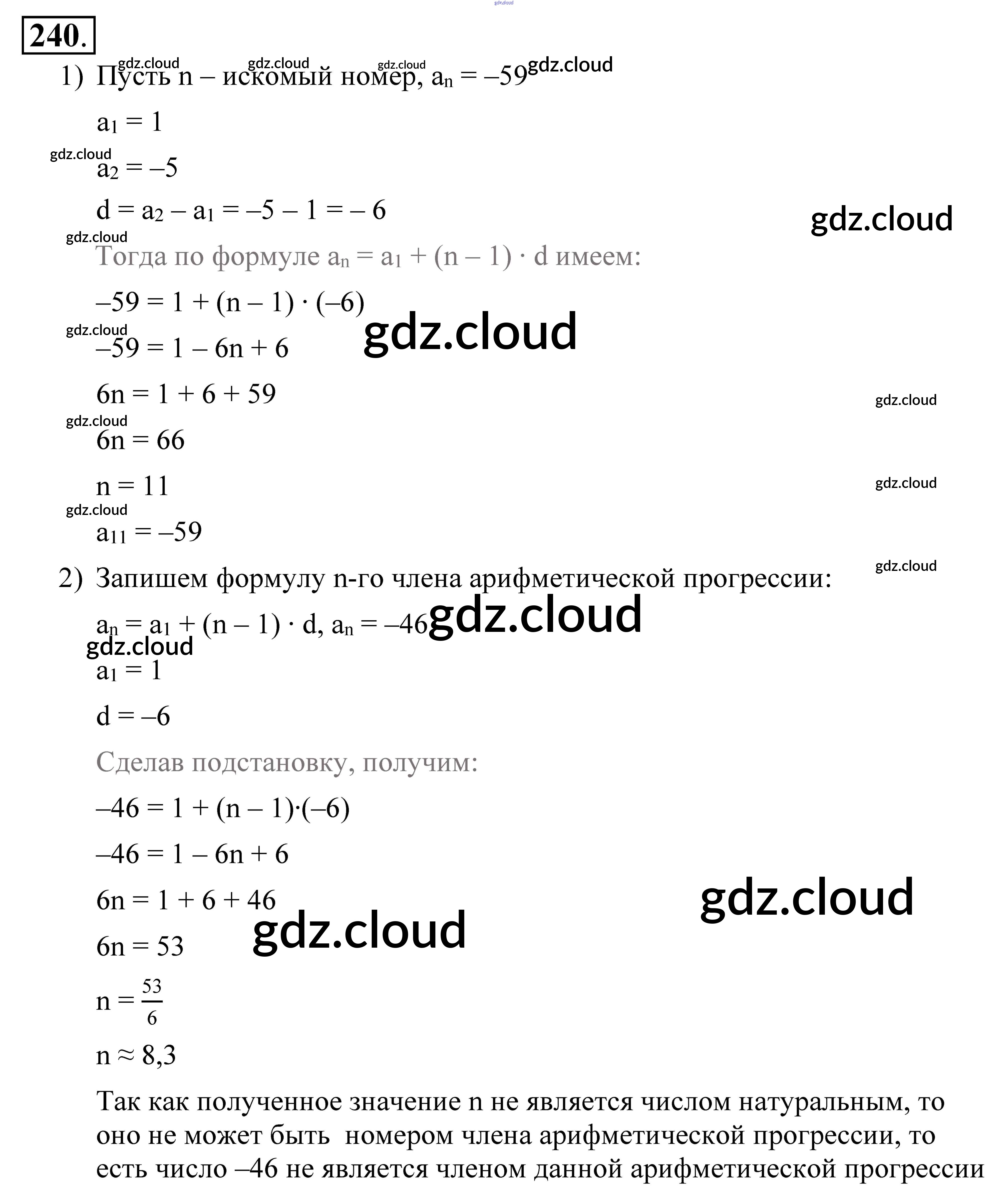 Ответ на задание 240 Учебник Алгебра за 9 (девятый) класс Алимов, Колягин, Сидоров 2014 ФГОС онлайн и без номера телефона.