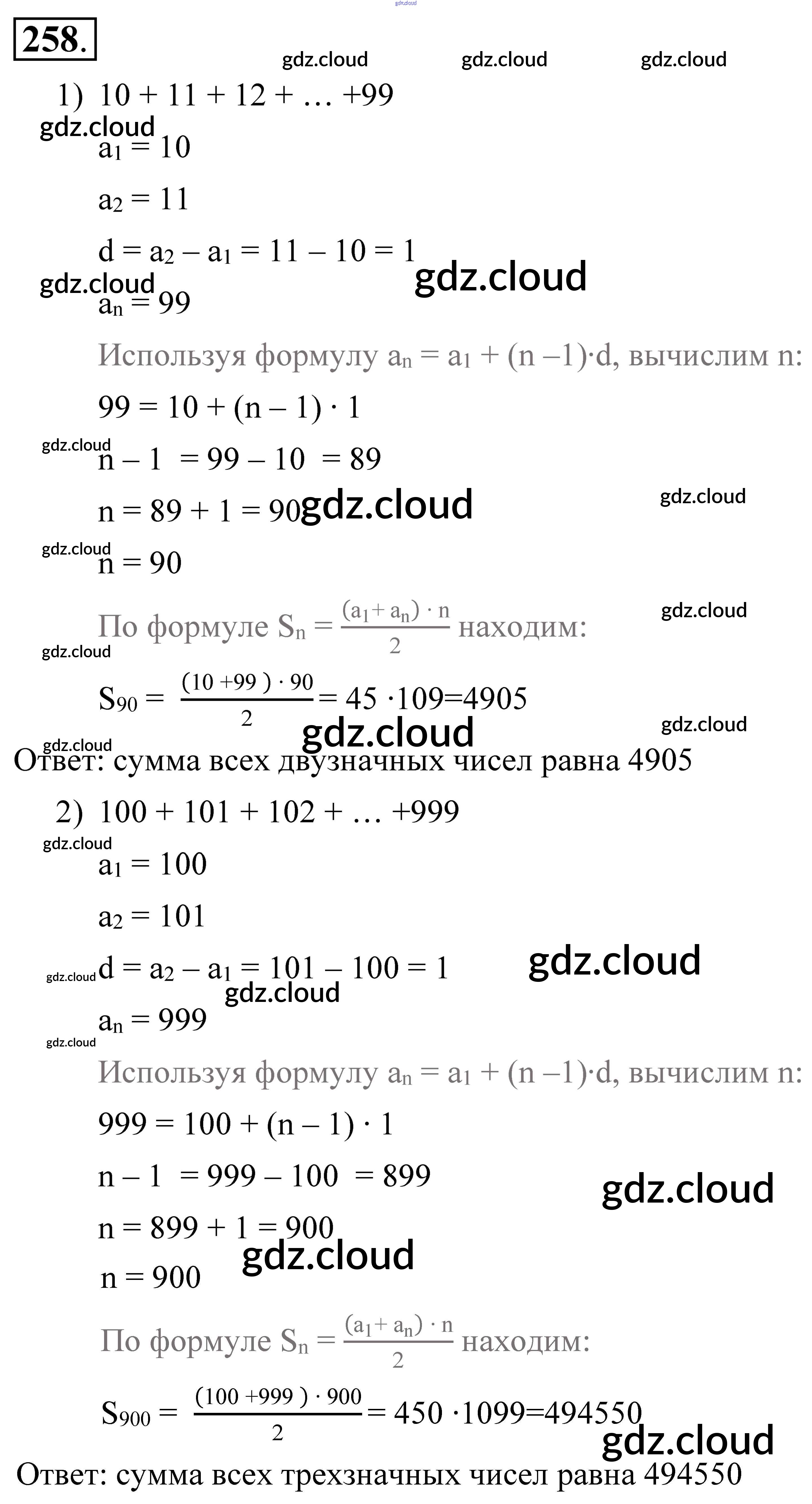 Ответ на задание 258 Учебник Алгебра за 9 (девятый) класс Алимов, Колягин, Сидоров 2014 ФГОС онлайн и без номера телефона.