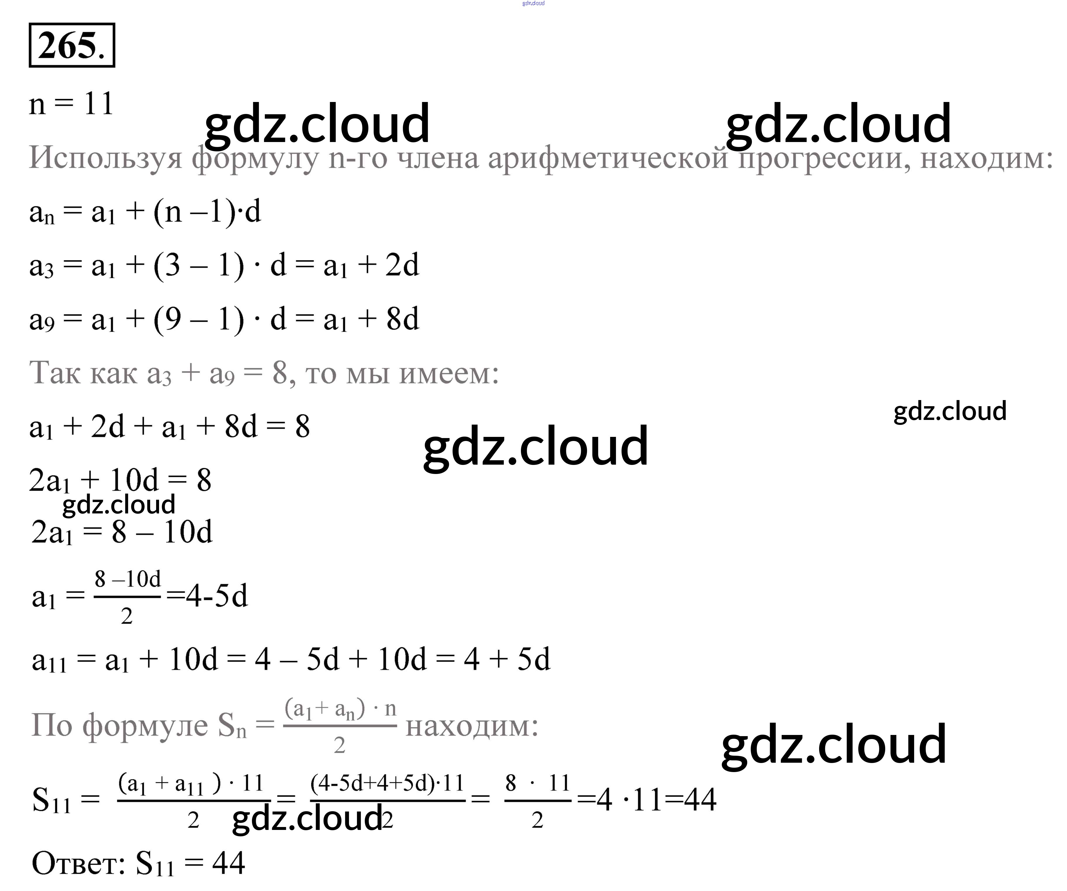 Ответ на задание 265 Учебник Алгебра за 9 (девятый) класс Алимов, Колягин, Сидоров 2014 ФГОС онлайн и без номера телефона.