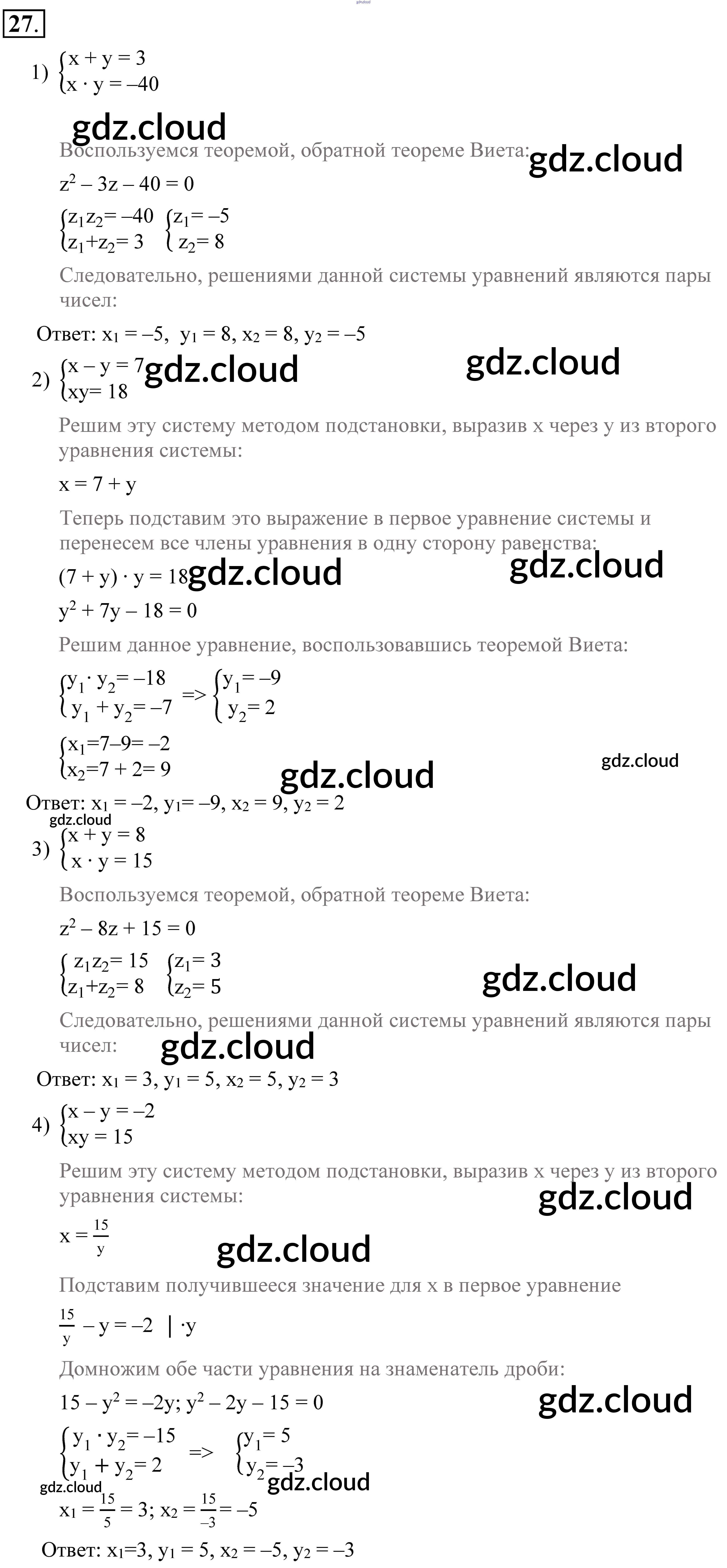 Ответ на задание 27 Учебник Алгебра за 9 (девятый) класс Алимов, Колягин, Сидоров 2014 ФГОС онлайн и без номера телефона.