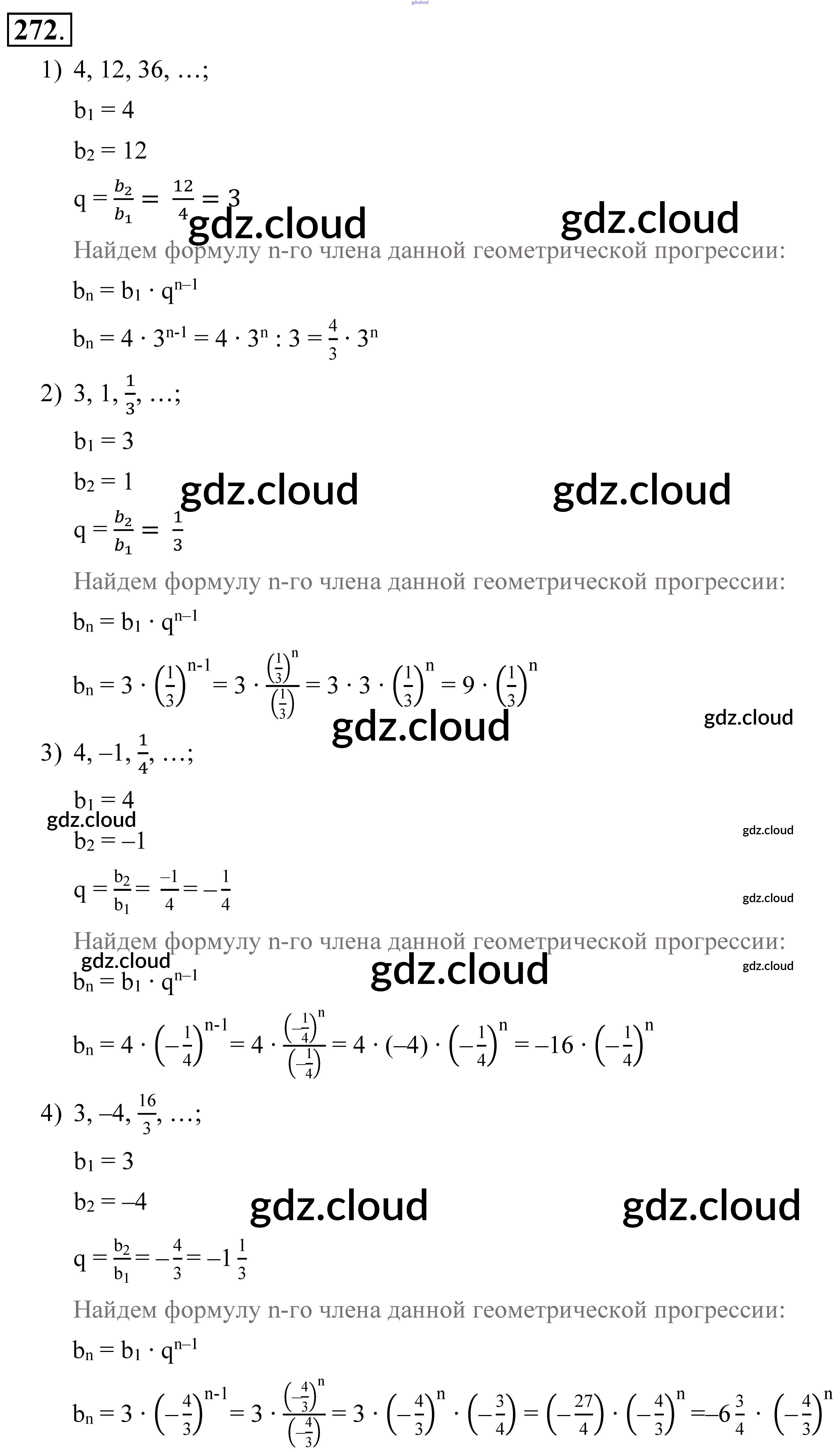Ответ на задание 272 Учебник Алгебра за 9 (девятый) класс Алимов, Колягин, Сидоров 2014 ФГОС онлайн и без номера телефона.