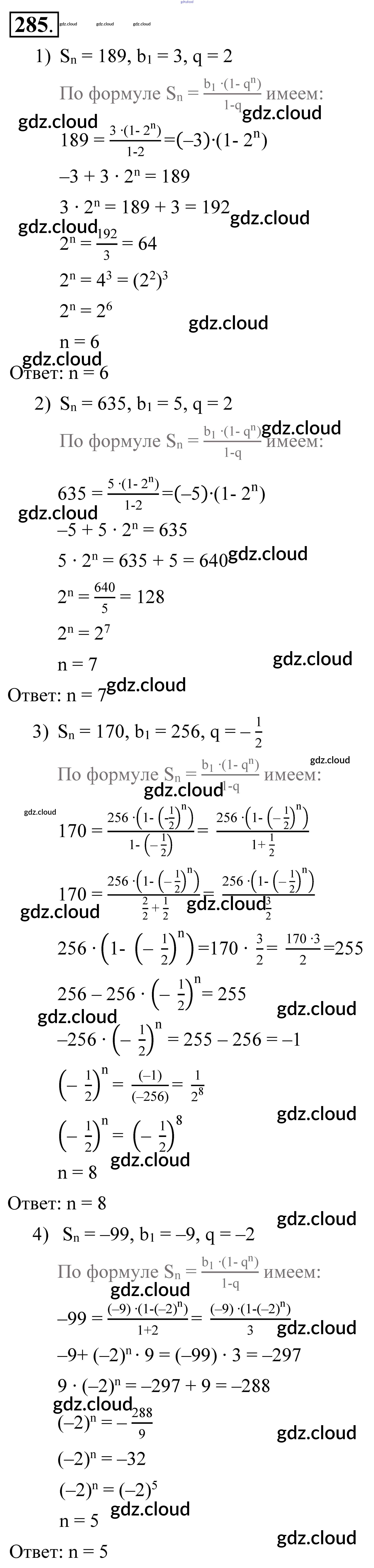Ответ на задание 285 Учебник Алгебра за 9 (девятый) класс Алимов, Колягин, Сидоров 2014 ФГОС онлайн и без номера телефона.