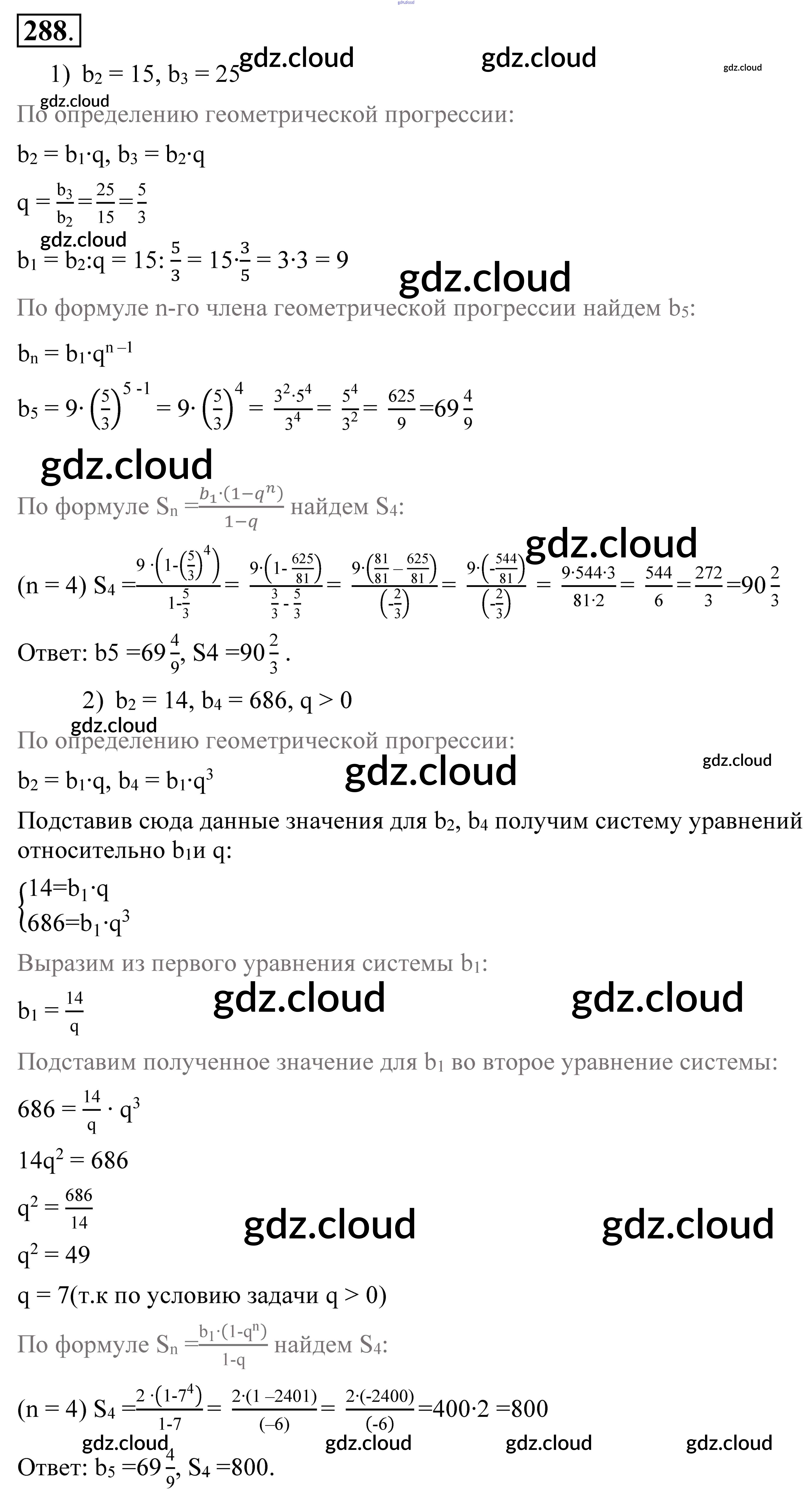 Ответ на задание 288 Учебник Алгебра за 9 (девятый) класс Алимов, Колягин, Сидоров 2014 ФГОС онлайн и без номера телефона.