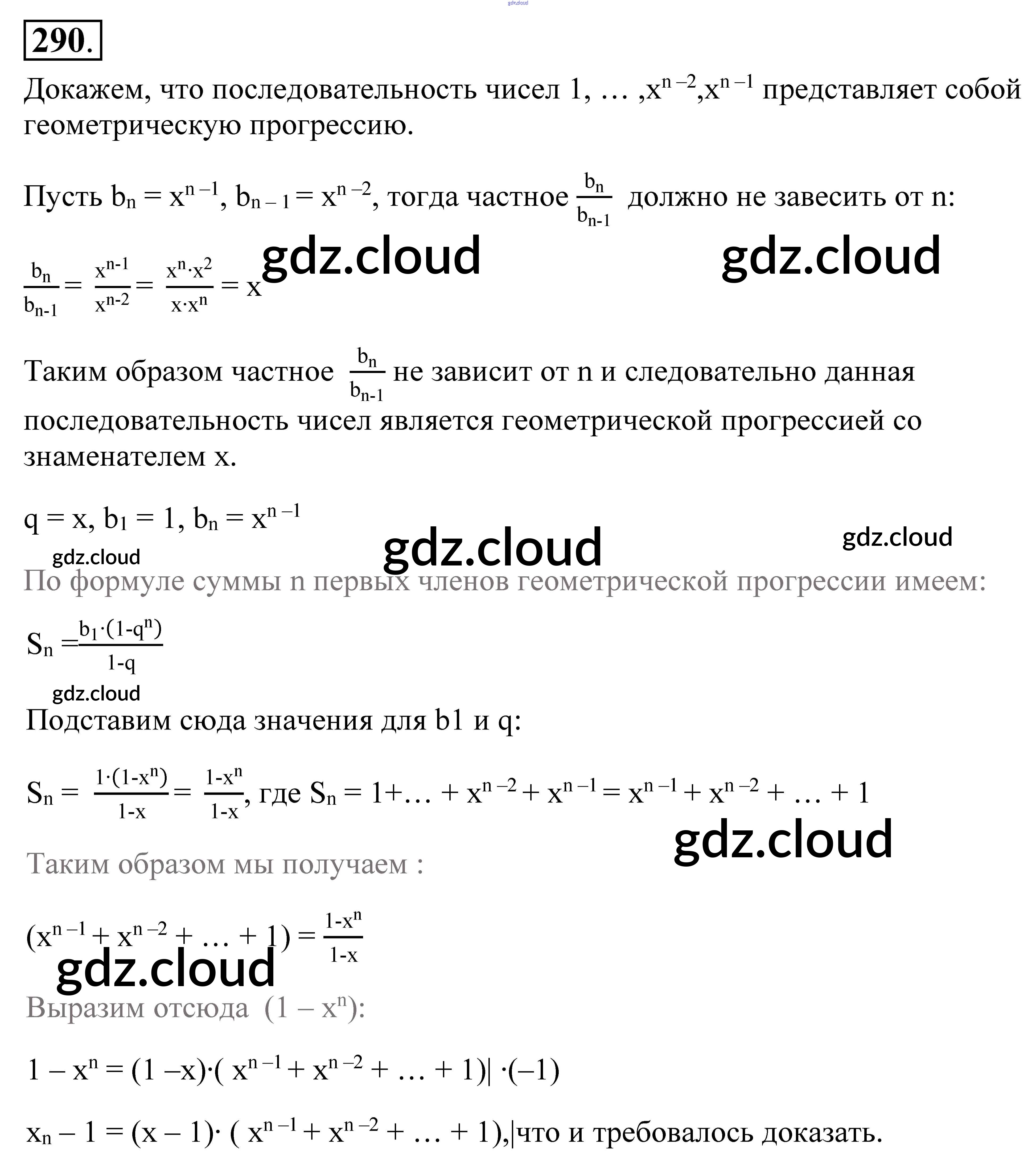 Ответ на задание 290 Учебник Алгебра за 9 (девятый) класс Алимов, Колягин, Сидоров 2014 ФГОС онлайн и без номера телефона.