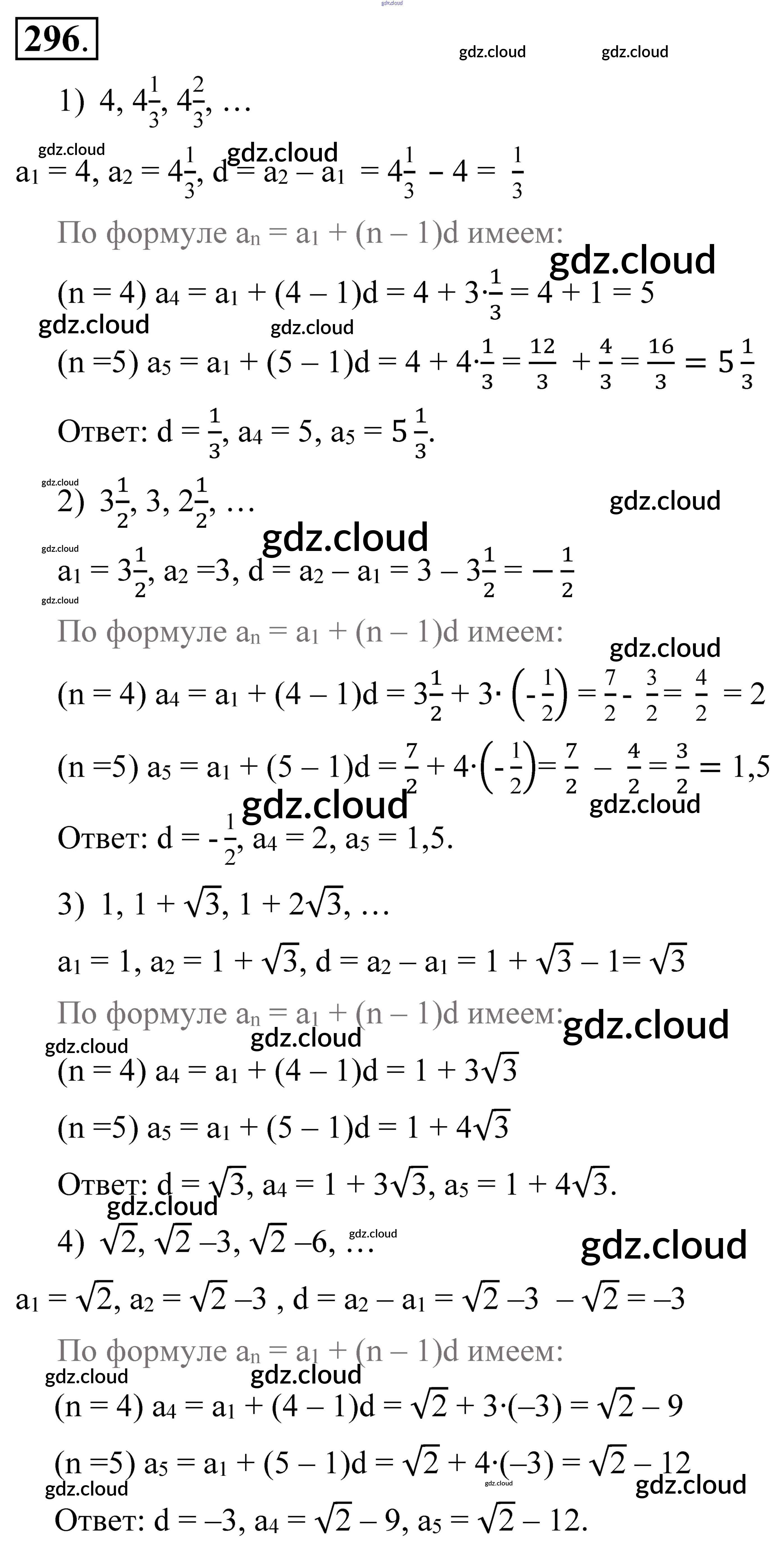 Ответ на задание 296 Учебник Алгебра за 9 (девятый) класс Алимов, Колягин, Сидоров 2014 ФГОС онлайн и без номера телефона.