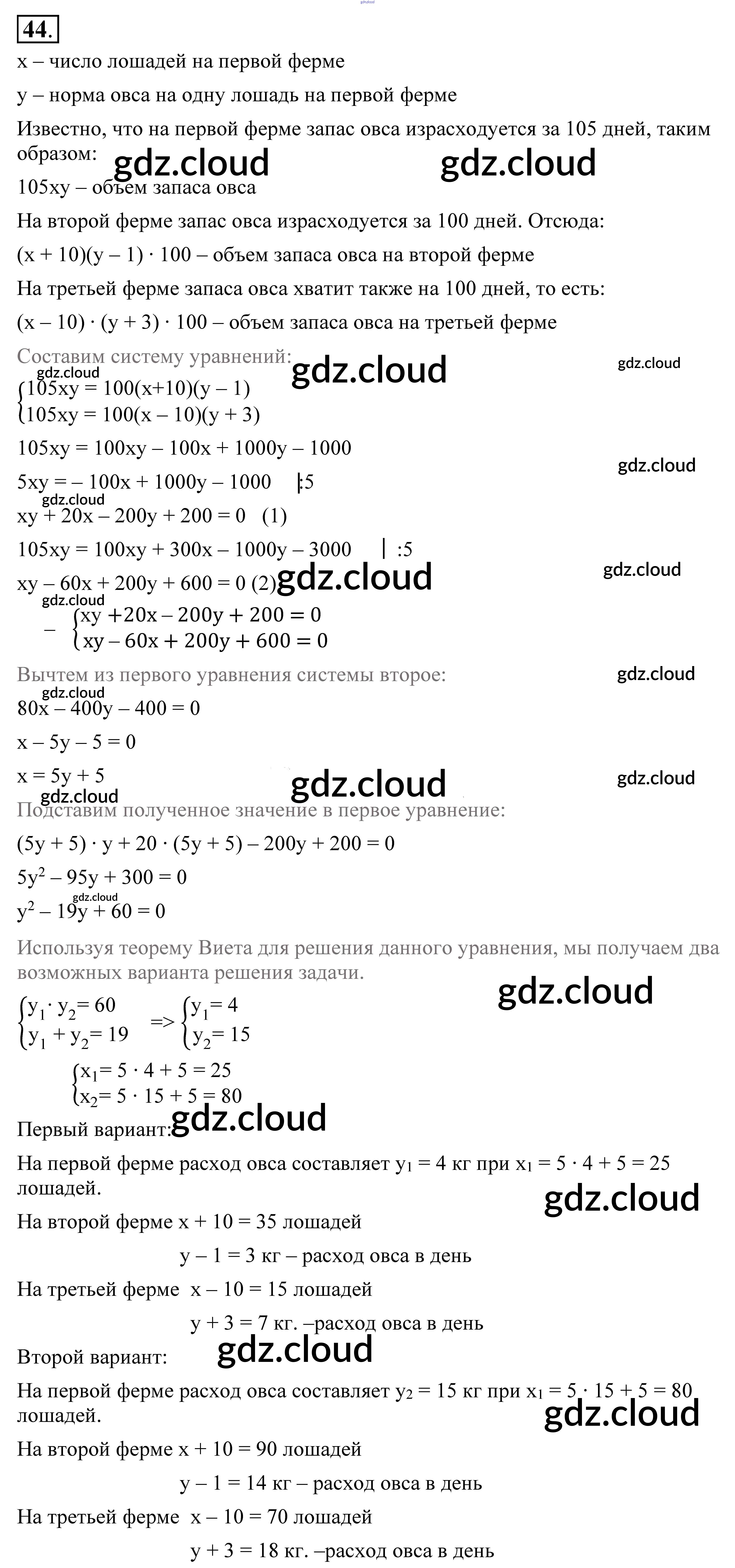 Ответ на задание 44 Учебник Алгебра за 9 (девятый) класс Алимов, Колягин, Сидоров 2014 ФГОС онлайн и без номера телефона.