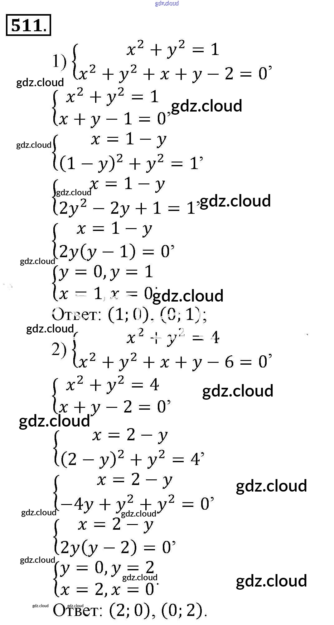 Ответ на задание 511 Учебник Алгебра за 9 (девятый) класс Алимов, Колягин, Сидоров 2014 ФГОС онлайн и без номера телефона.