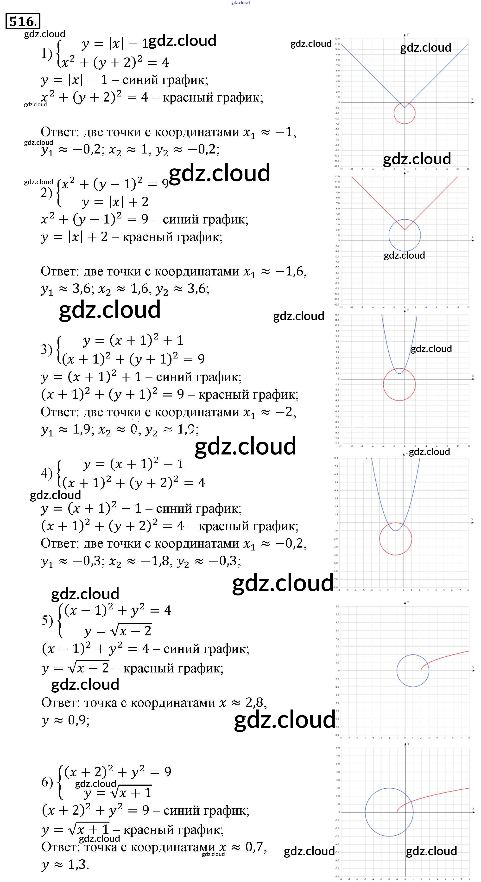 Ответ на задание 516 Учебник Алгебра за 9 (девятый) класс Алимов, Колягин, Сидоров 2014 ФГОС онлайн и без номера телефона.