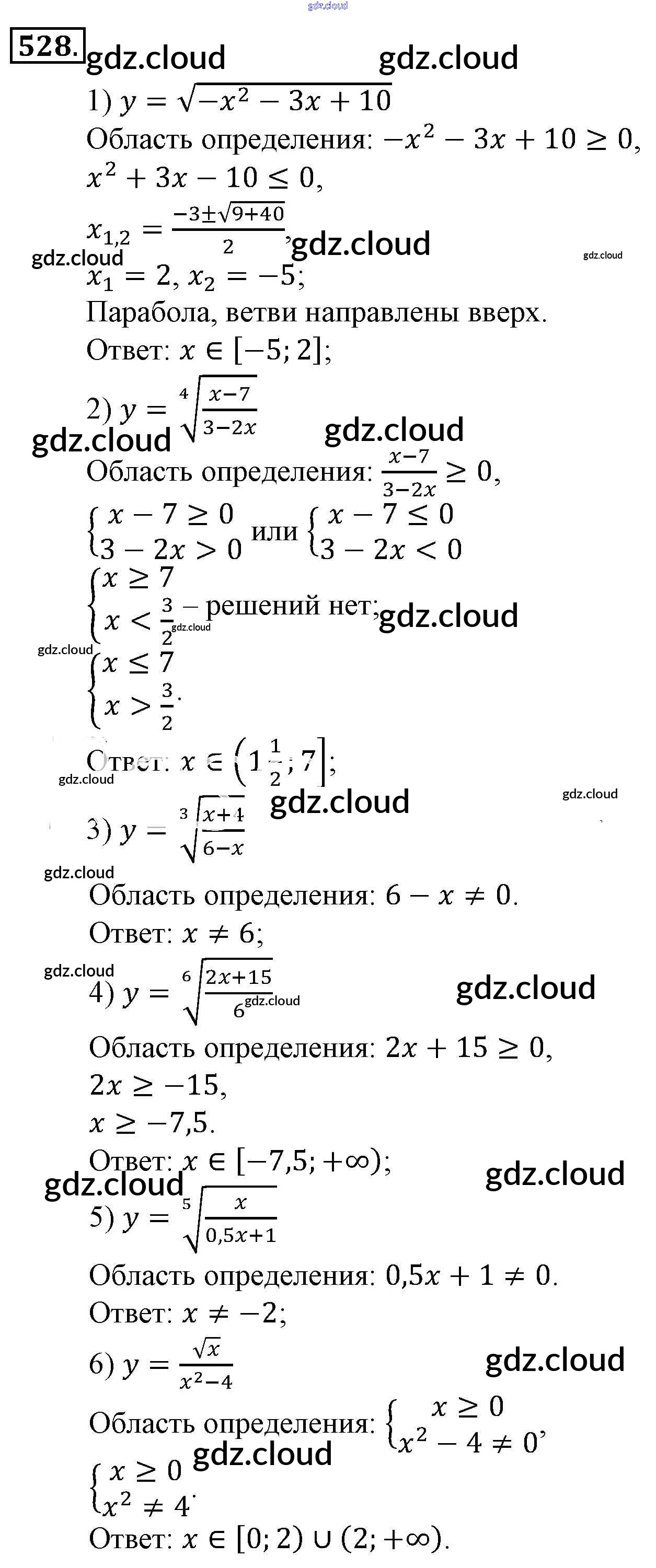 Ответ на задание 528 Учебник Алгебра за 9 (девятый) класс Алимов, Колягин, Сидоров 2014 ФГОС онлайн и без номера телефона.