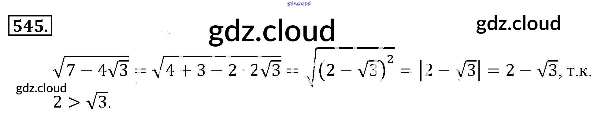 Ответ на задание 545 Учебник Алгебра за 9 (девятый) класс Алимов, Колягин, Сидоров 2014 ФГОС онлайн и без номера телефона.