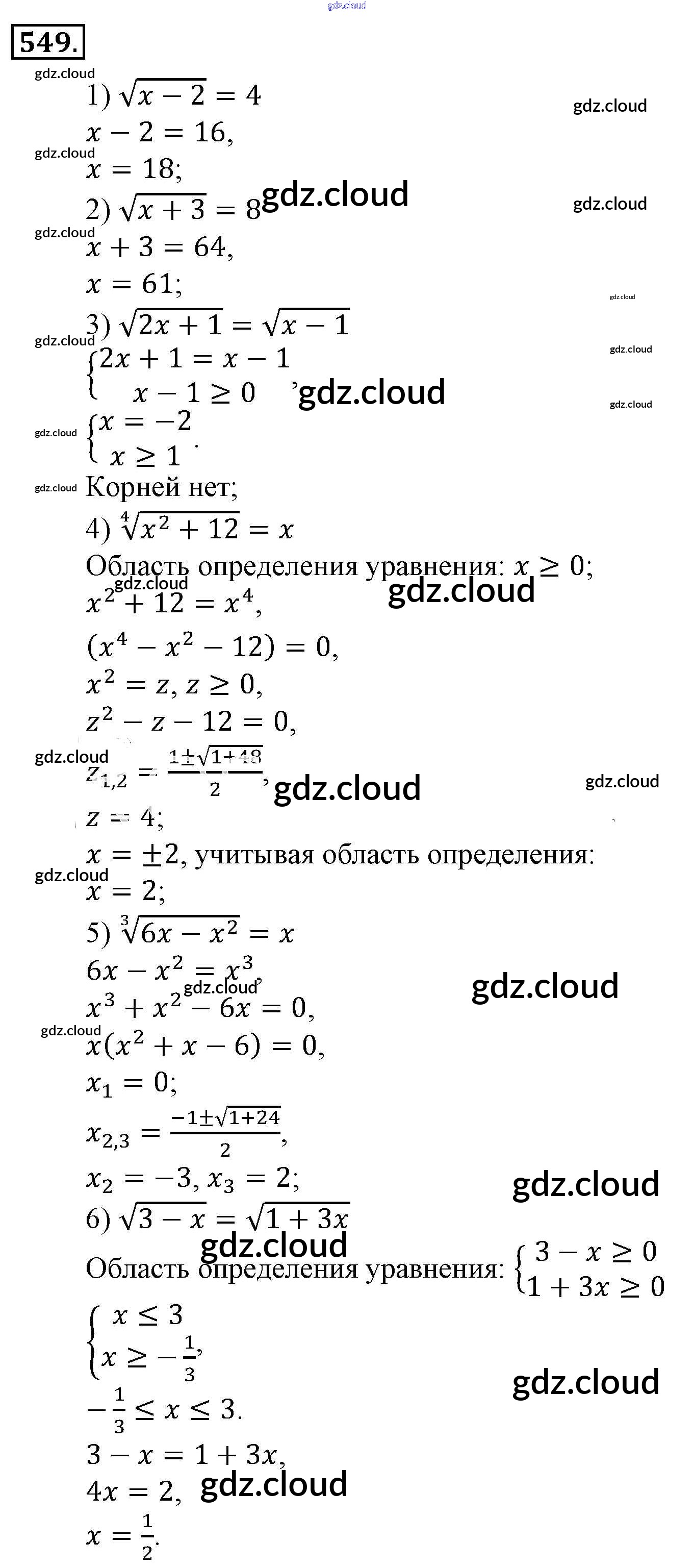 Ответ на задание 549 Учебник Алгебра за 9 (девятый) класс Алимов, Колягин, Сидоров 2014 ФГОС онлайн и без номера телефона.