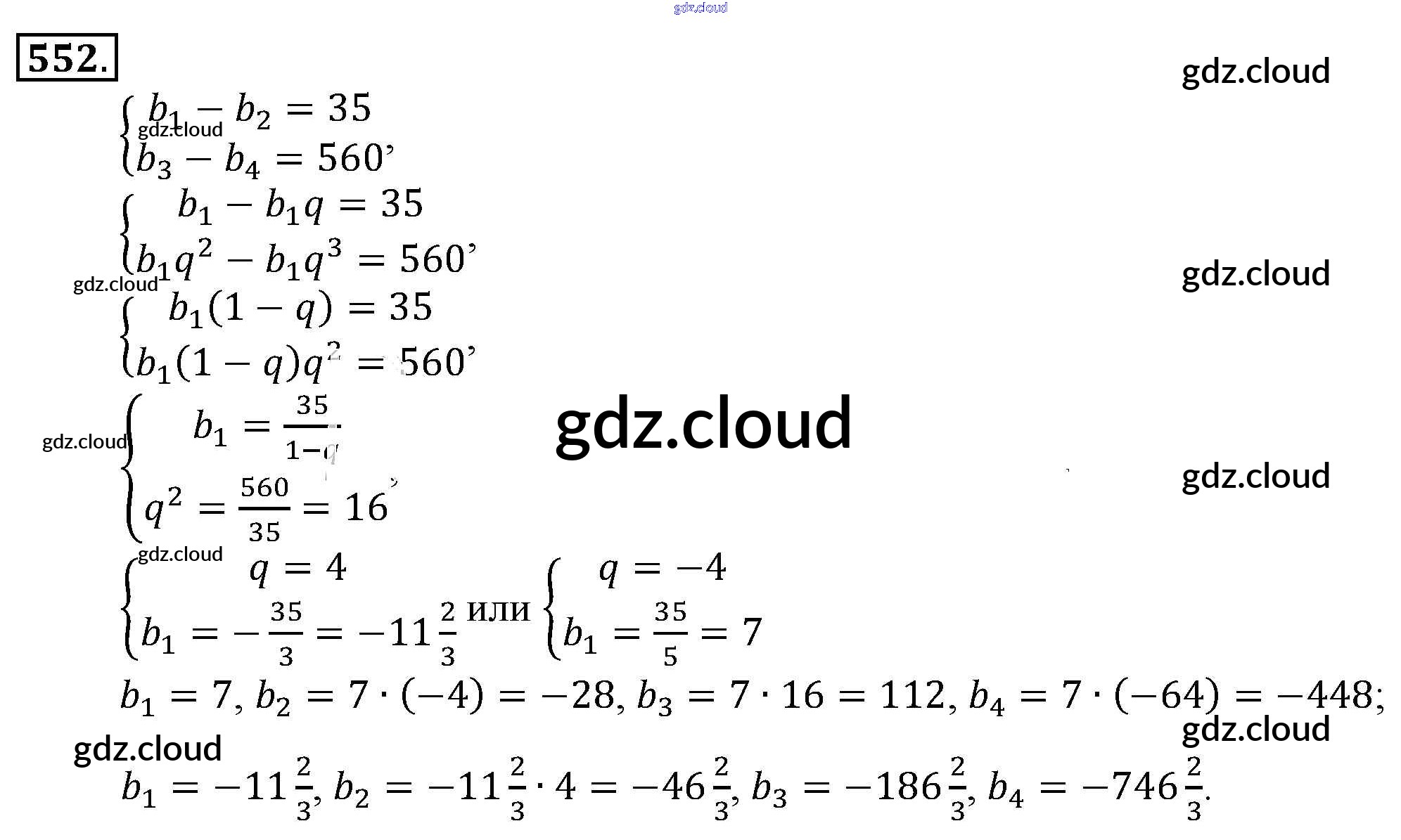Ответ на задание 552 Учебник Алгебра за 9 (девятый) класс Алимов, Колягин, Сидоров 2014 ФГОС онлайн и без номера телефона.