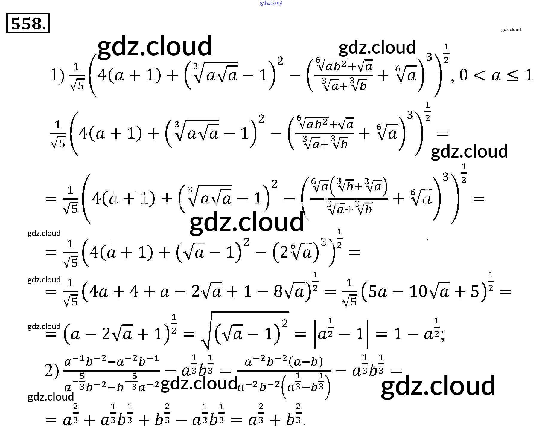 Ответ на задание 558 Учебник Алгебра за 9 (девятый) класс Алимов, Колягин, Сидоров 2014 ФГОС онлайн и без номера телефона.