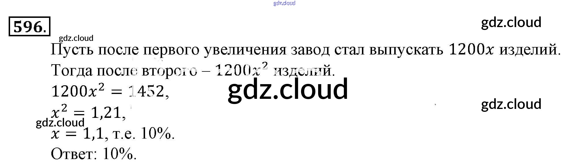 Ответ на задание 596 Учебник Алгебра за 9 (девятый) класс Алимов, Колягин, Сидоров 2014 ФГОС онлайн и без номера телефона.