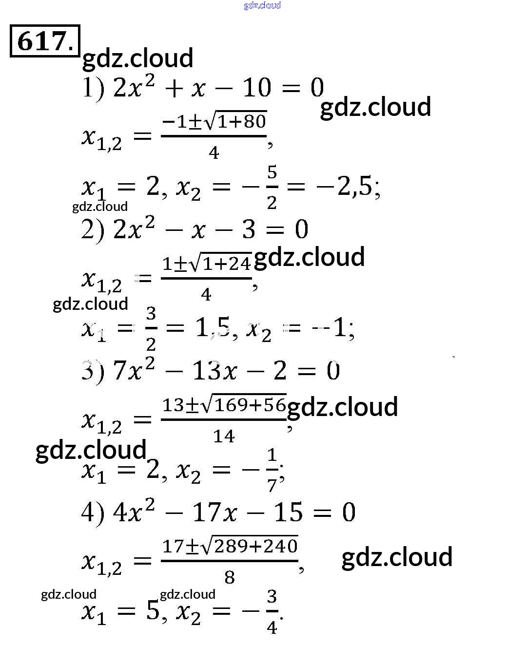 Ответ на задание 617 Учебник Алгебра за 9 (девятый) класс Алимов, Колягин, Сидоров 2014 ФГОС онлайн и без номера телефона.