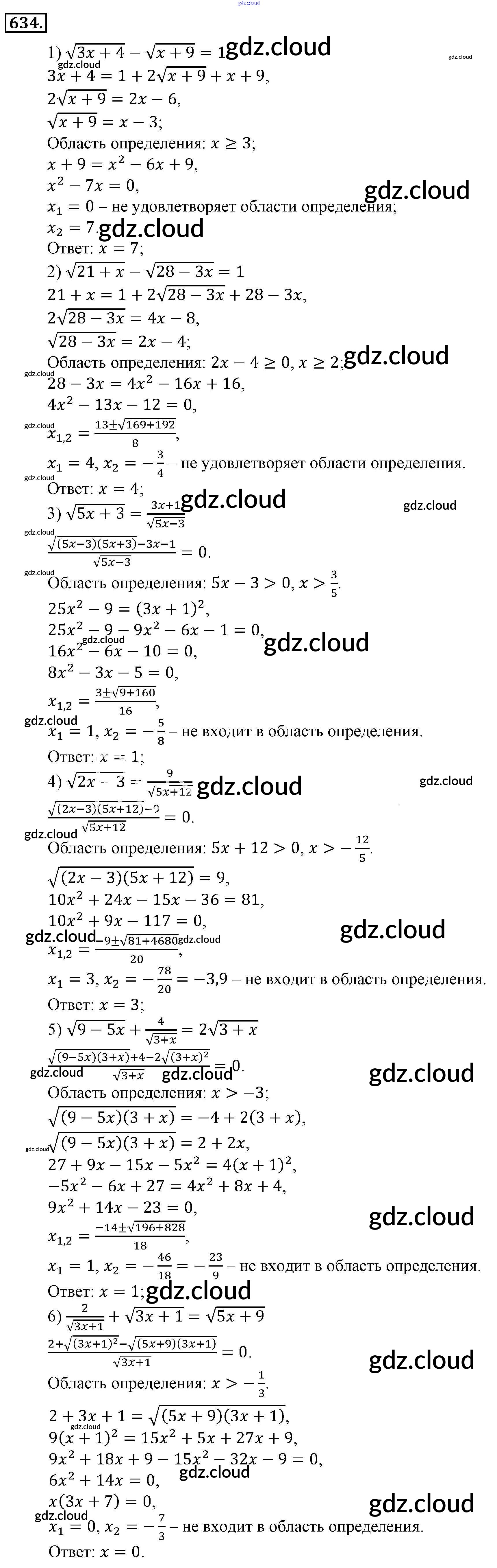Ответ на задание 634 Учебник Алгебра за 9 (девятый) класс Алимов, Колягин, Сидоров 2014 ФГОС онлайн и без номера телефона.