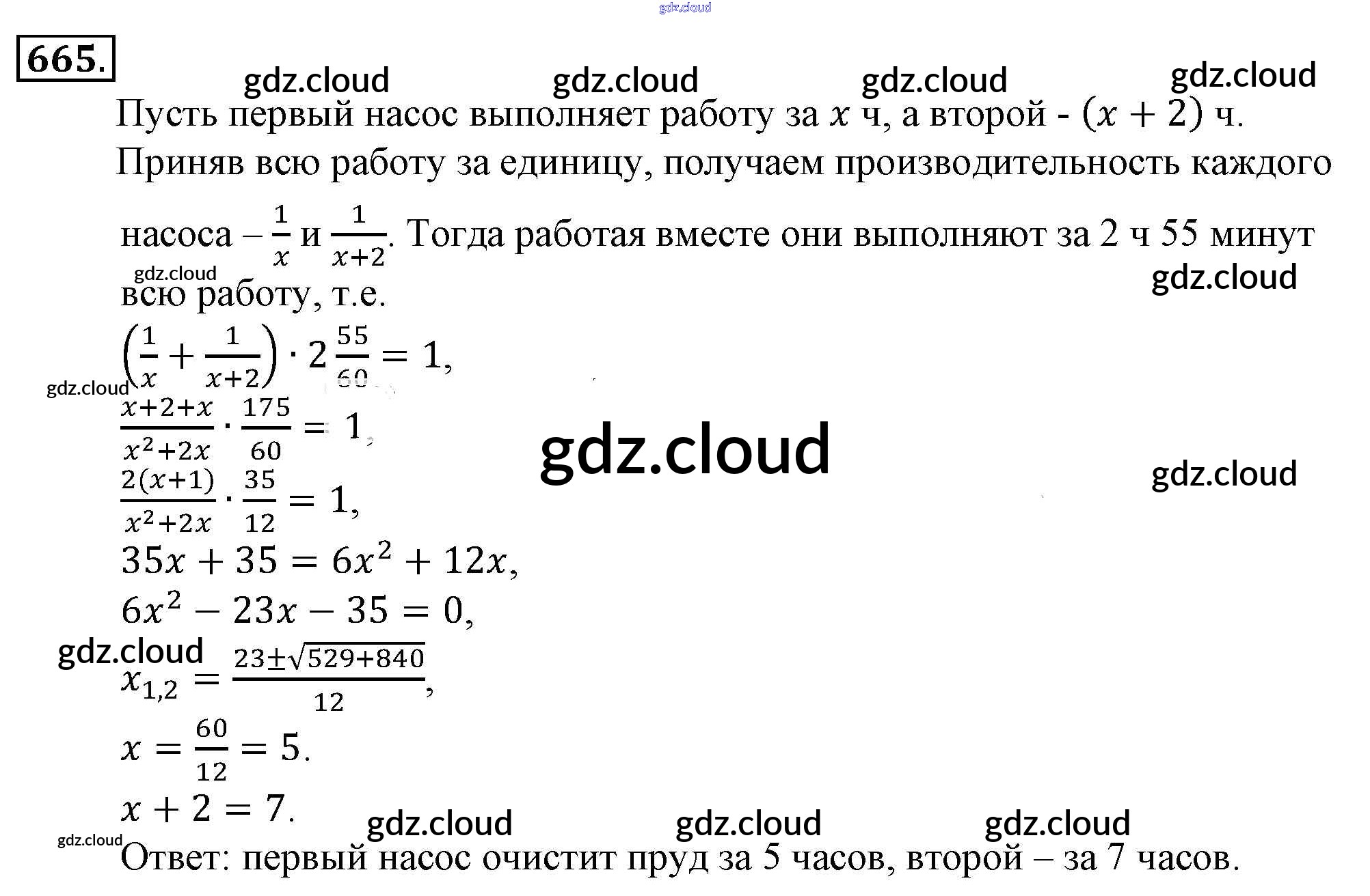Ответ на задание 665 Учебник Алгебра за 9 (девятый) класс Алимов, Колягин, Сидоров 2014 ФГОС онлайн и без номера телефона.